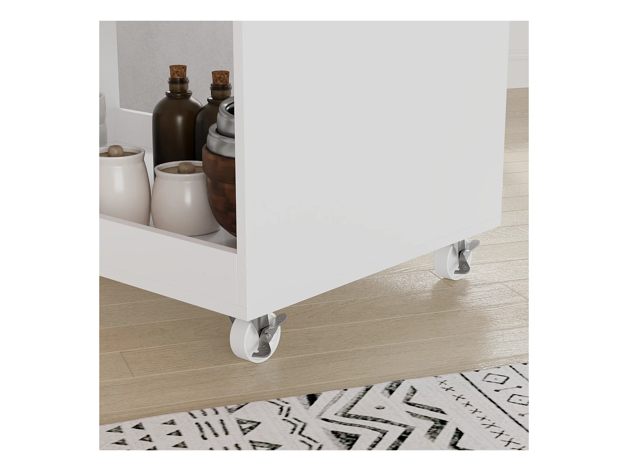 Desserte de cuisine blanche BENDOR plateau en bois d'hévéa. 83 x 47 x 91 cm. 1 poignée. 4 roues. 1 tiroir. 5 étagères. 1 porte. style contemporain