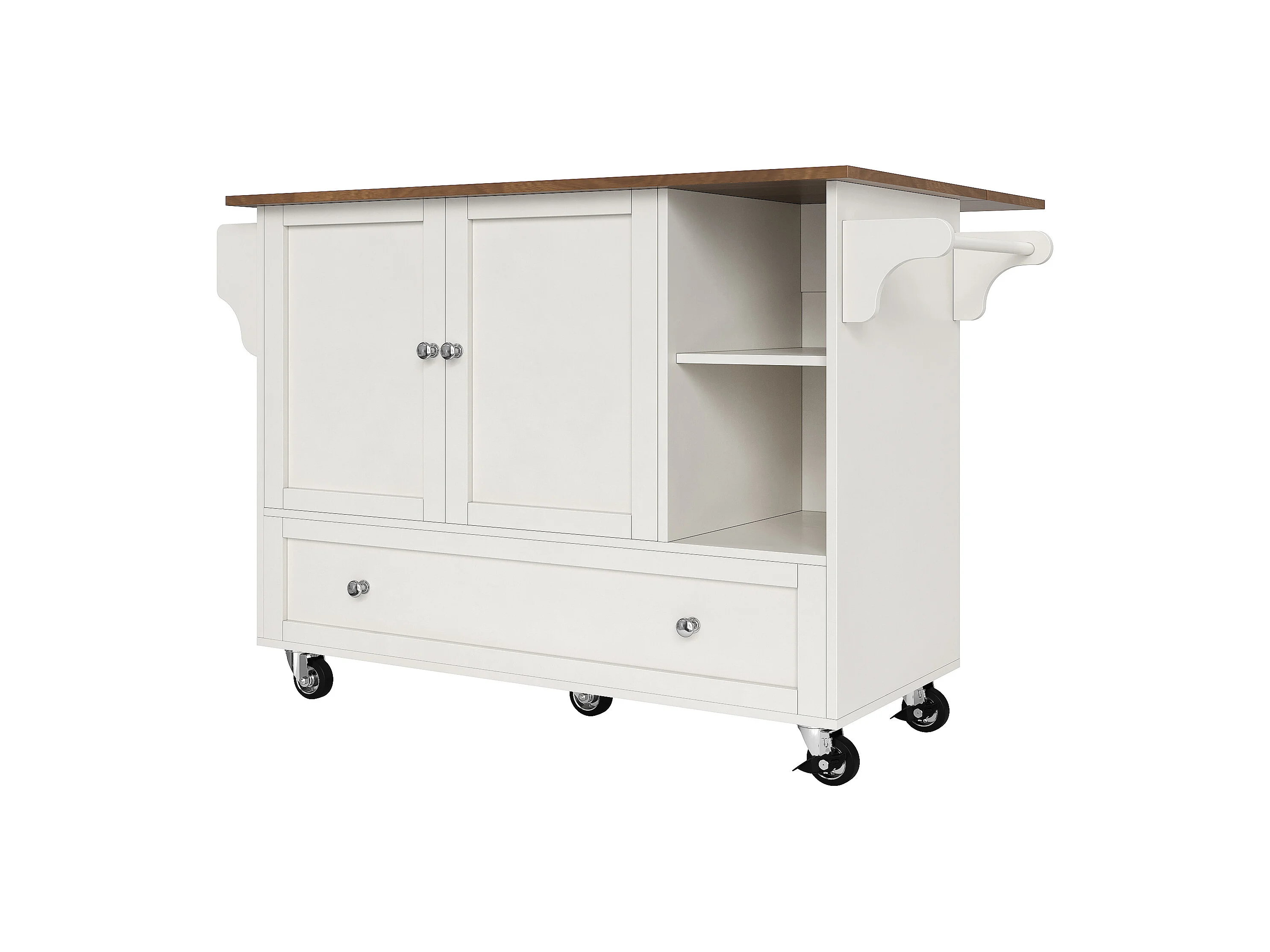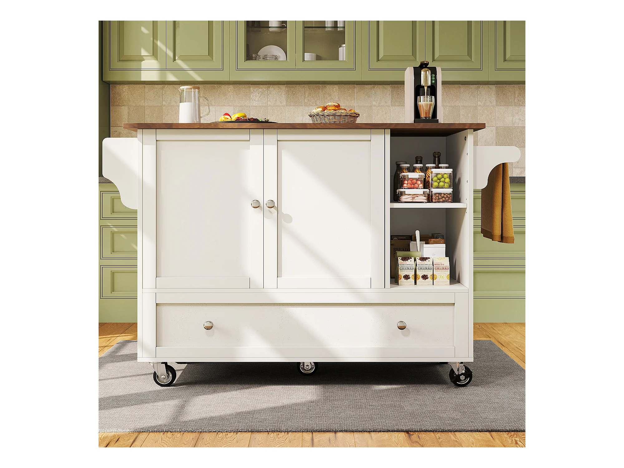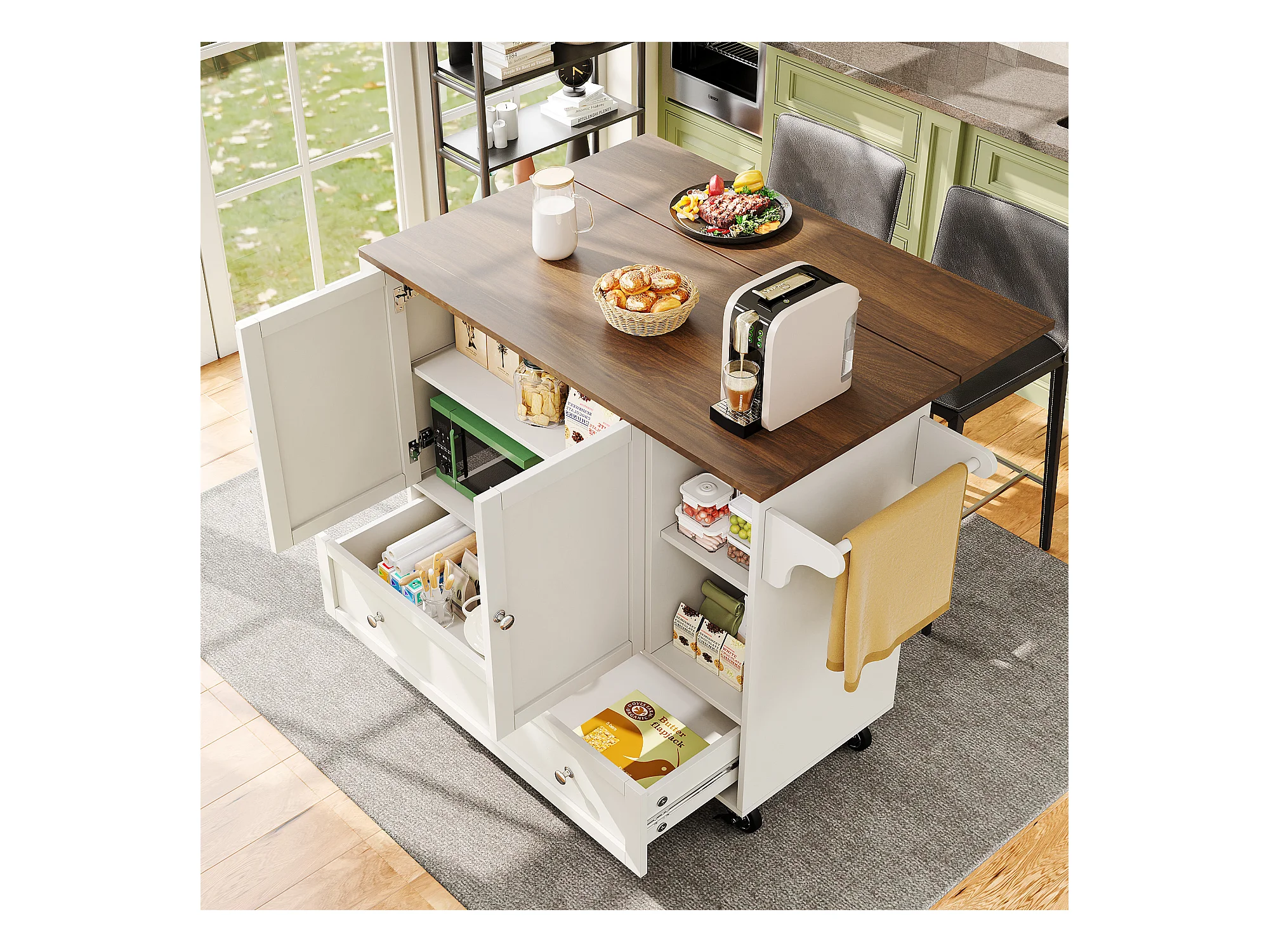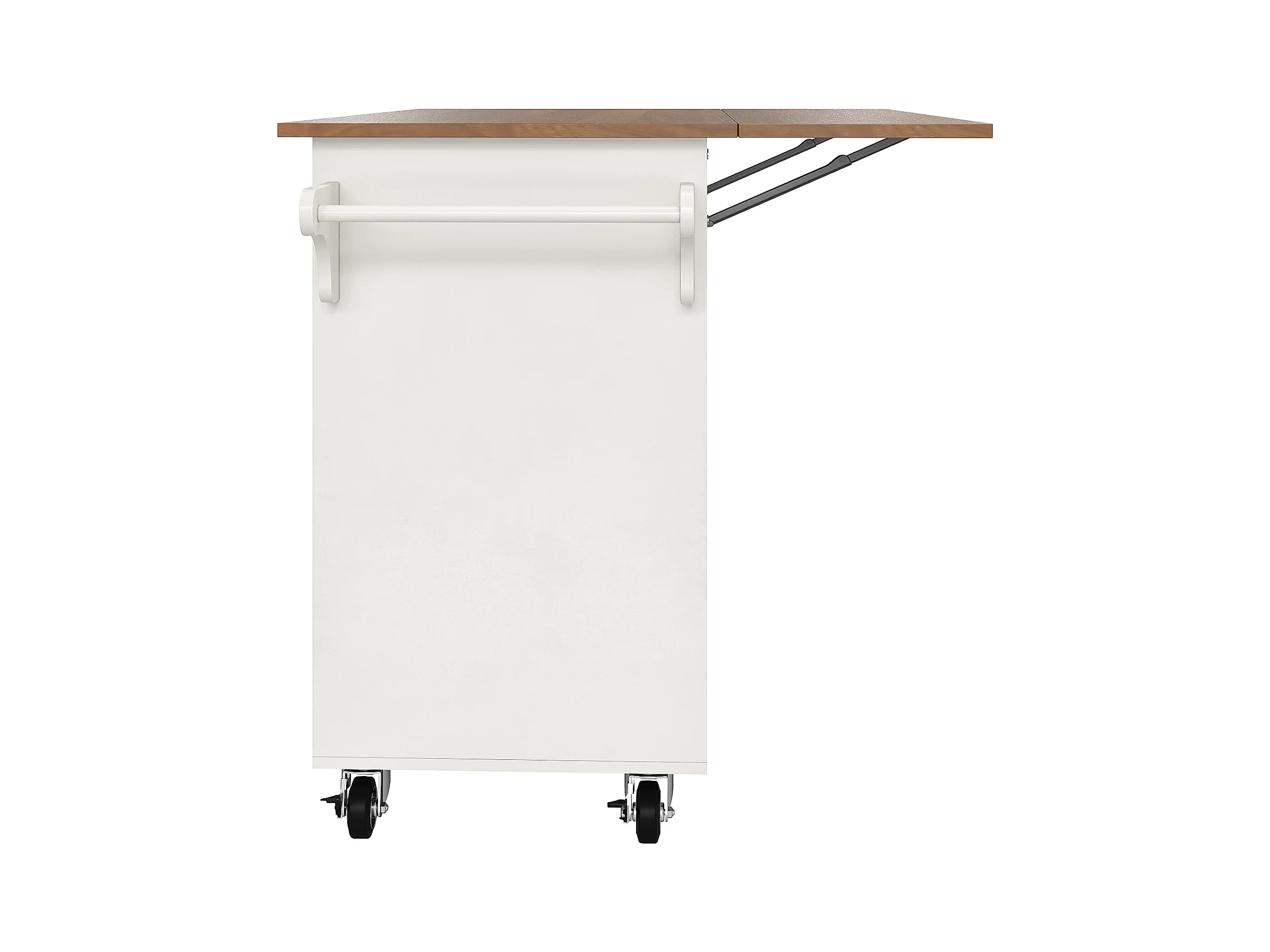 Desserte de cuisine avec table pliable, rangement pratique, porte-épices et porte-serviettes, 128×40×92,5 cm, blanc