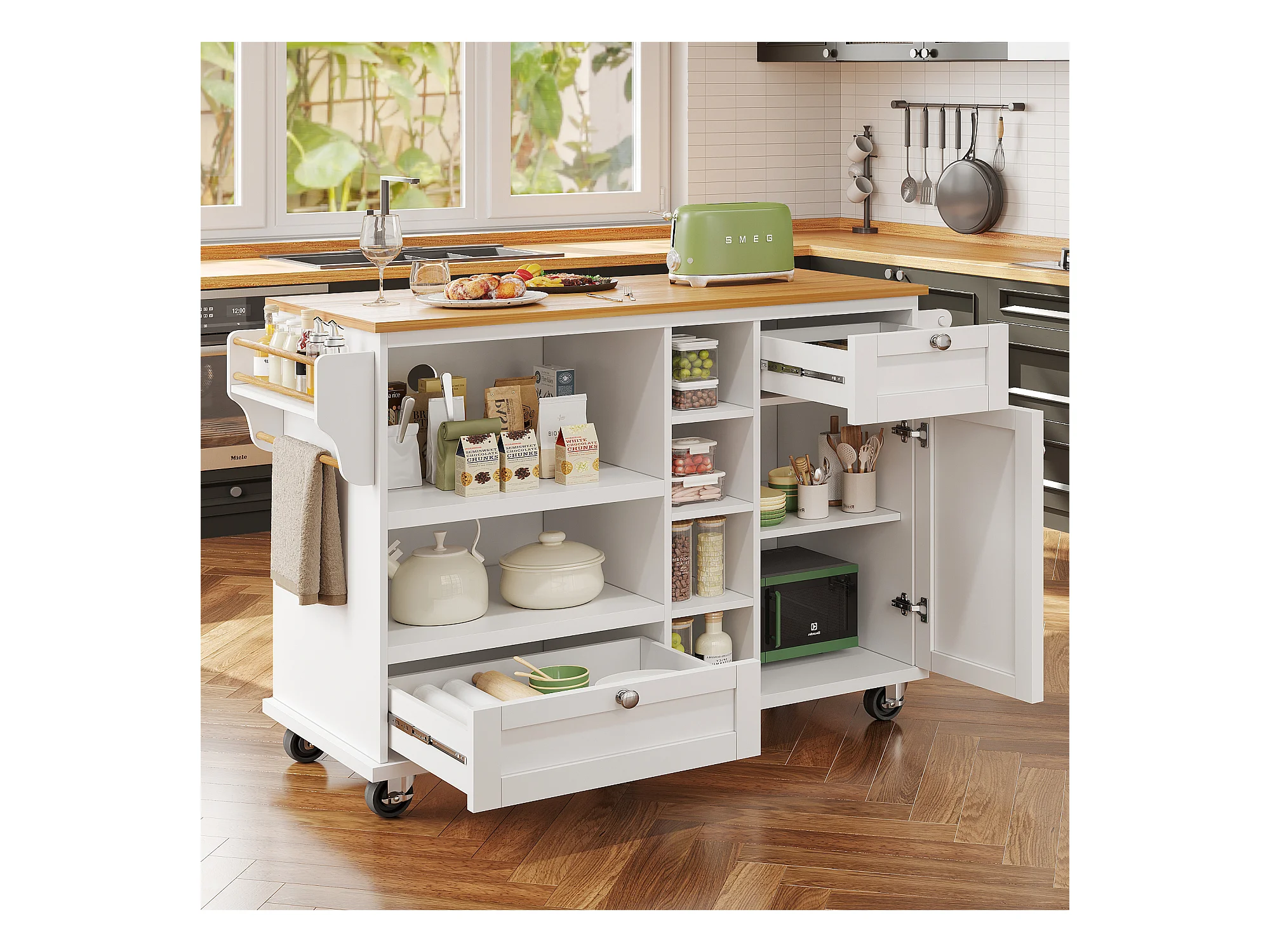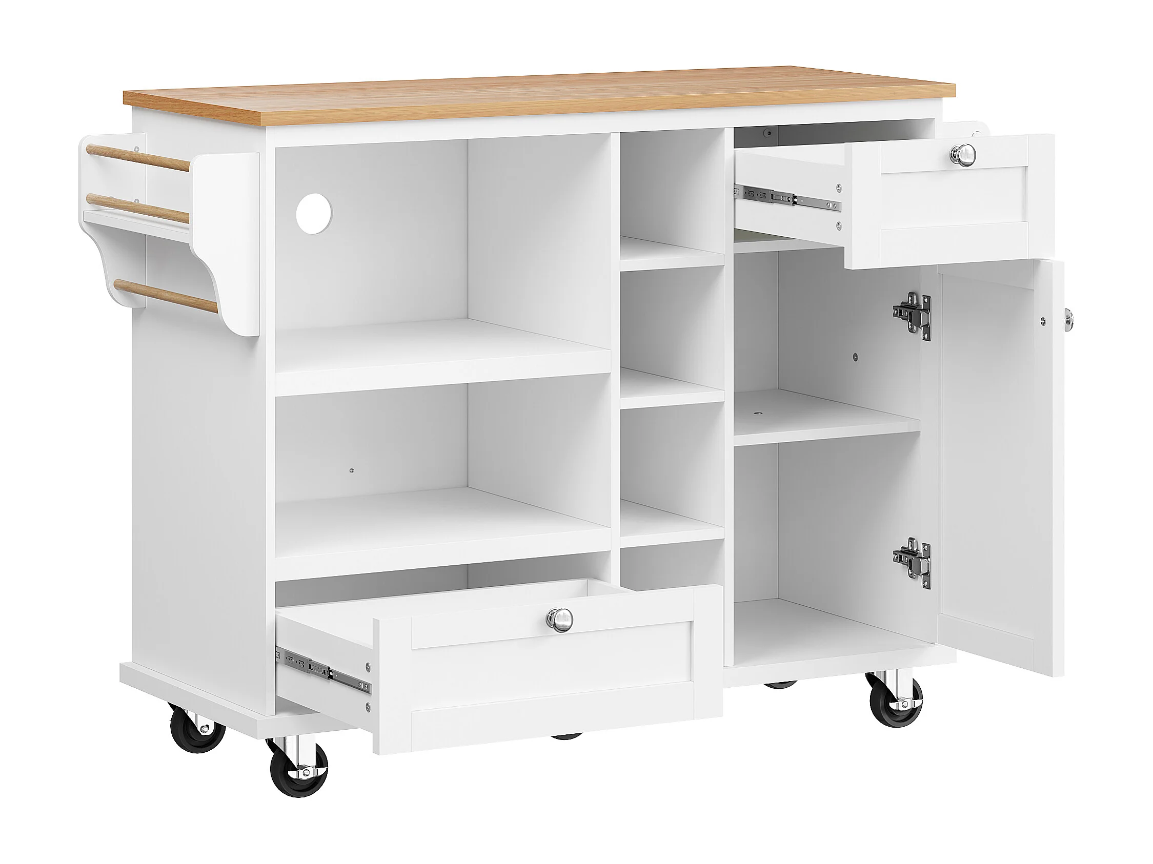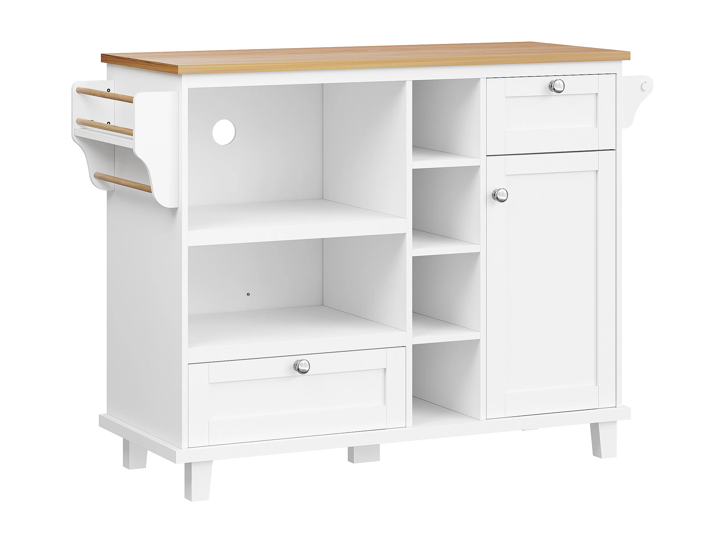 Desserte de cuisine blanche - Desserte de cuisine avec 2 tiroirs et 1 porte - rangement ouvert et porte-serviettes - deux modes d'utilisation