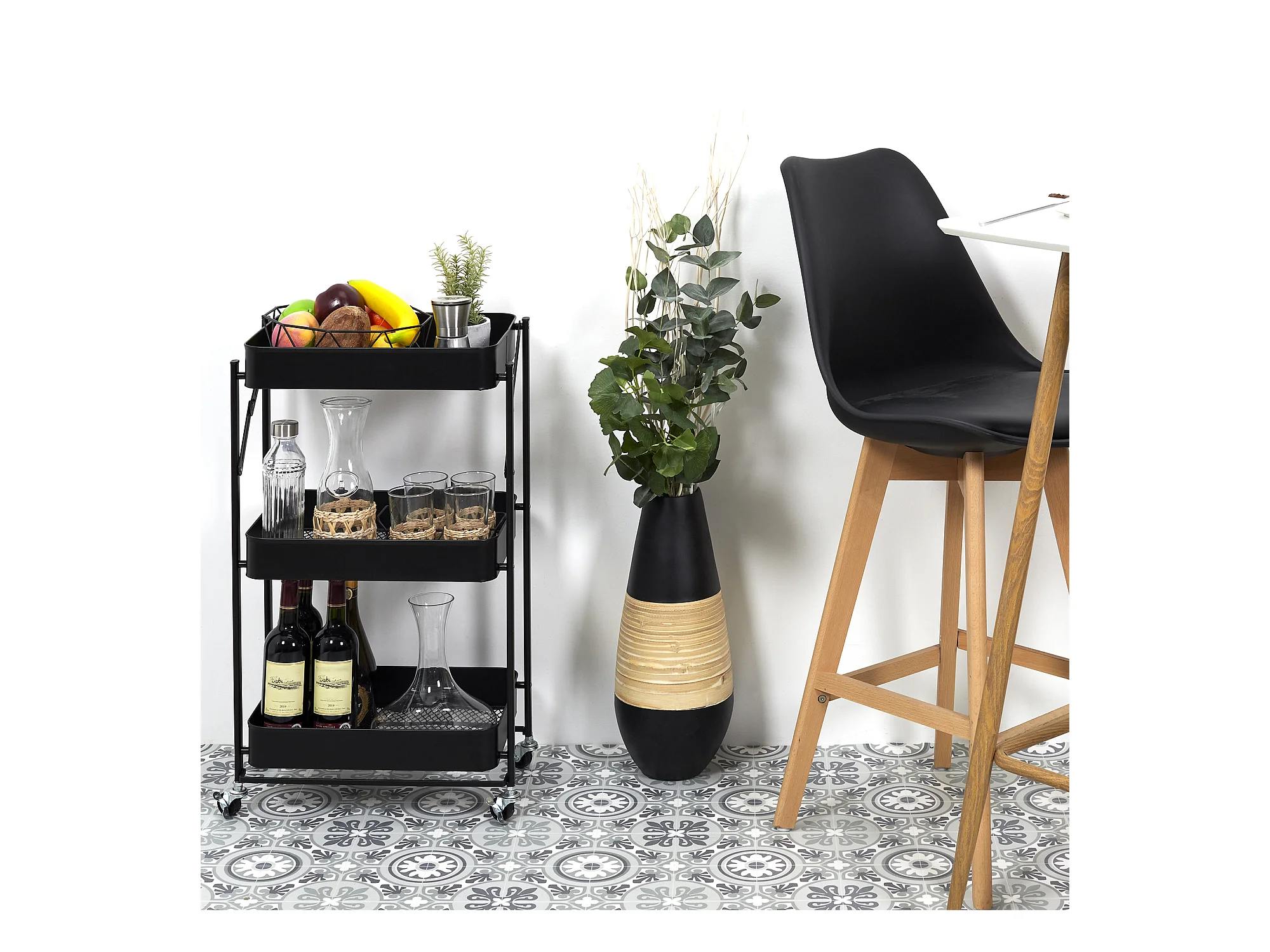 Desserte en métal noir avec 3 étagères 56x37x81 cm