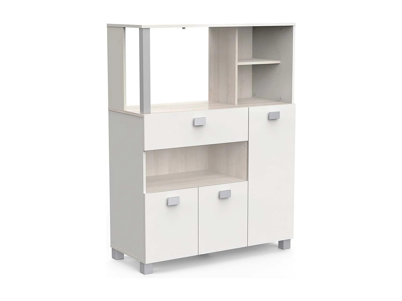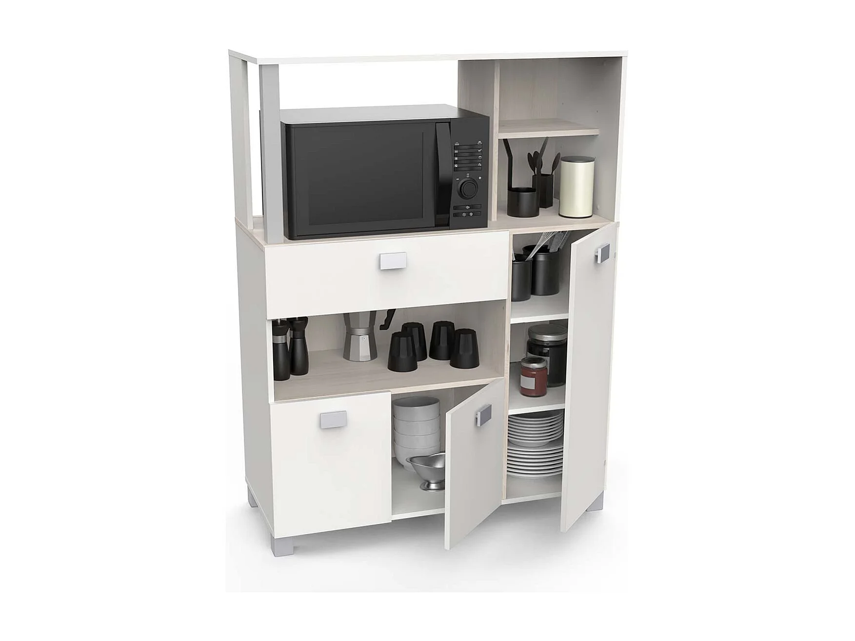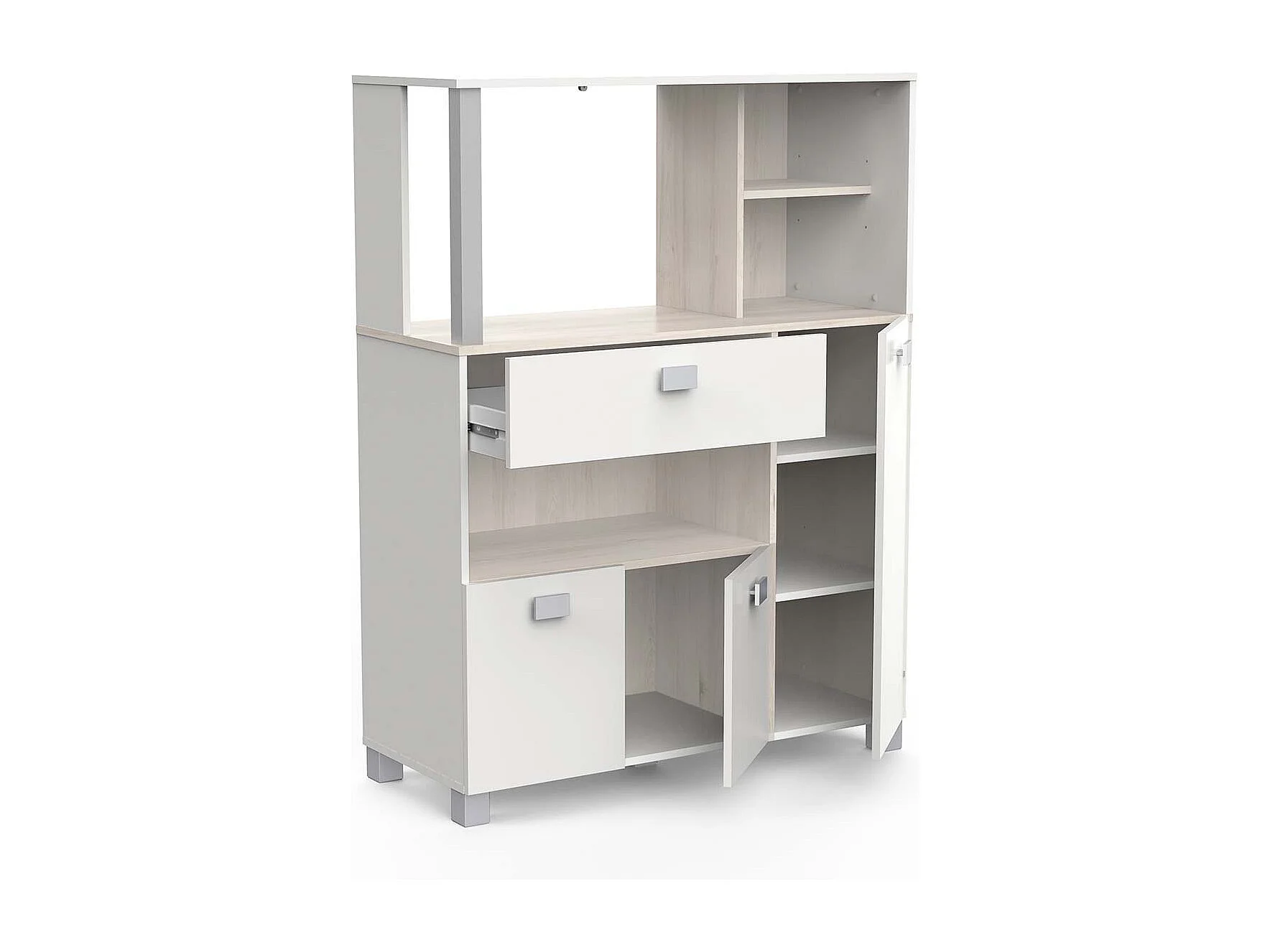 Desserte de cuisine meuble micro-ondes couleur acacia / blanc mat - Largeur 99,3 x Profondeur 41,3 x Hauteur 132,2 cm