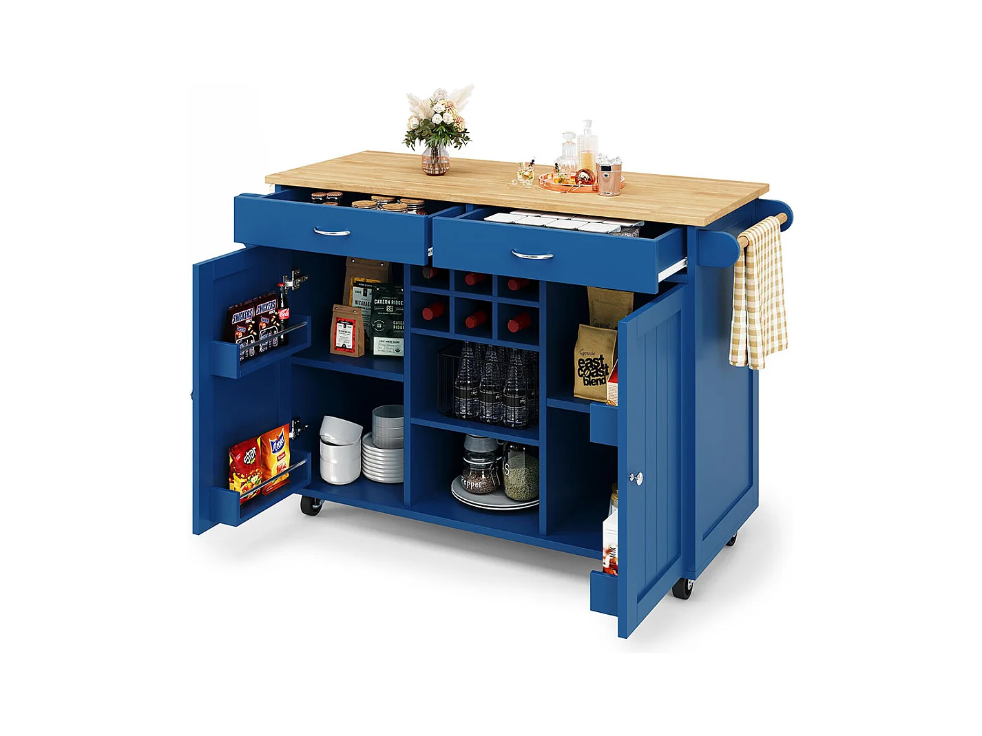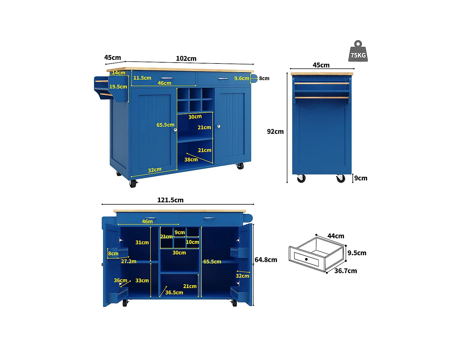 Desserte de cuisine multifonction avec espace de rangement buffet et chariot de service couleur bleu marine