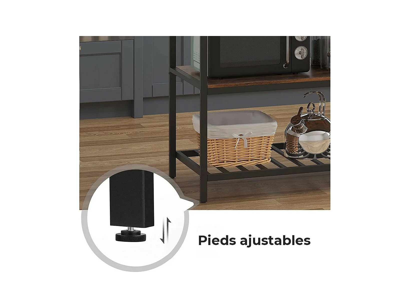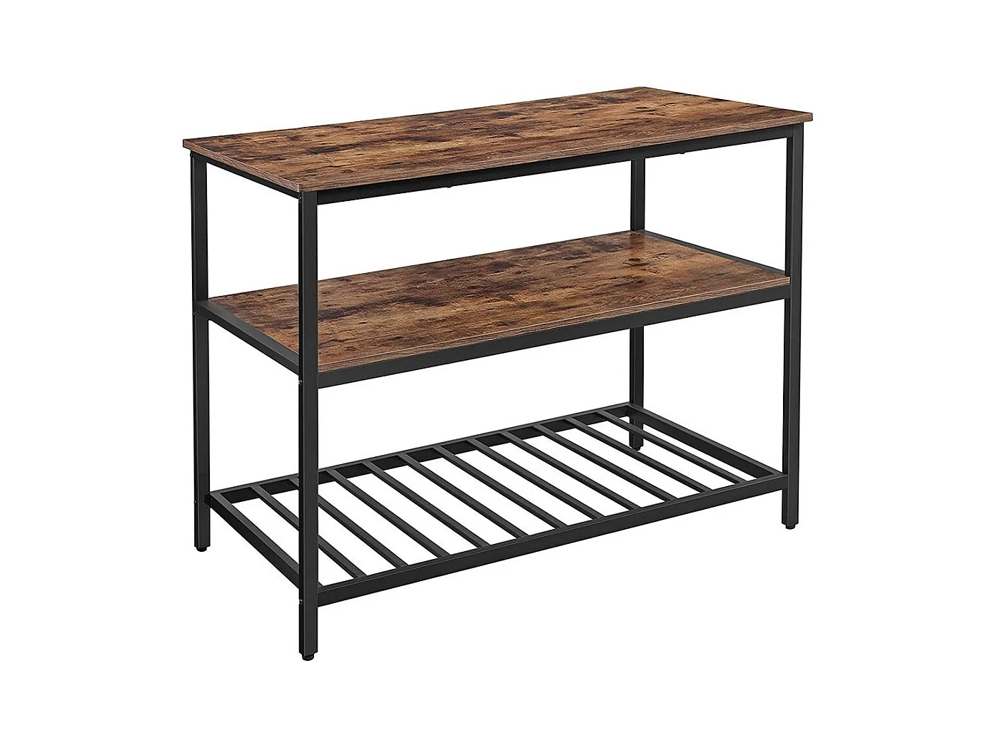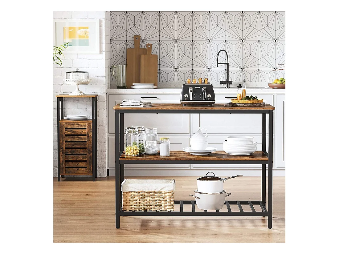 Desserte de cuisine style industriel collection TAMPA structure en métal noir et plateau en bois.