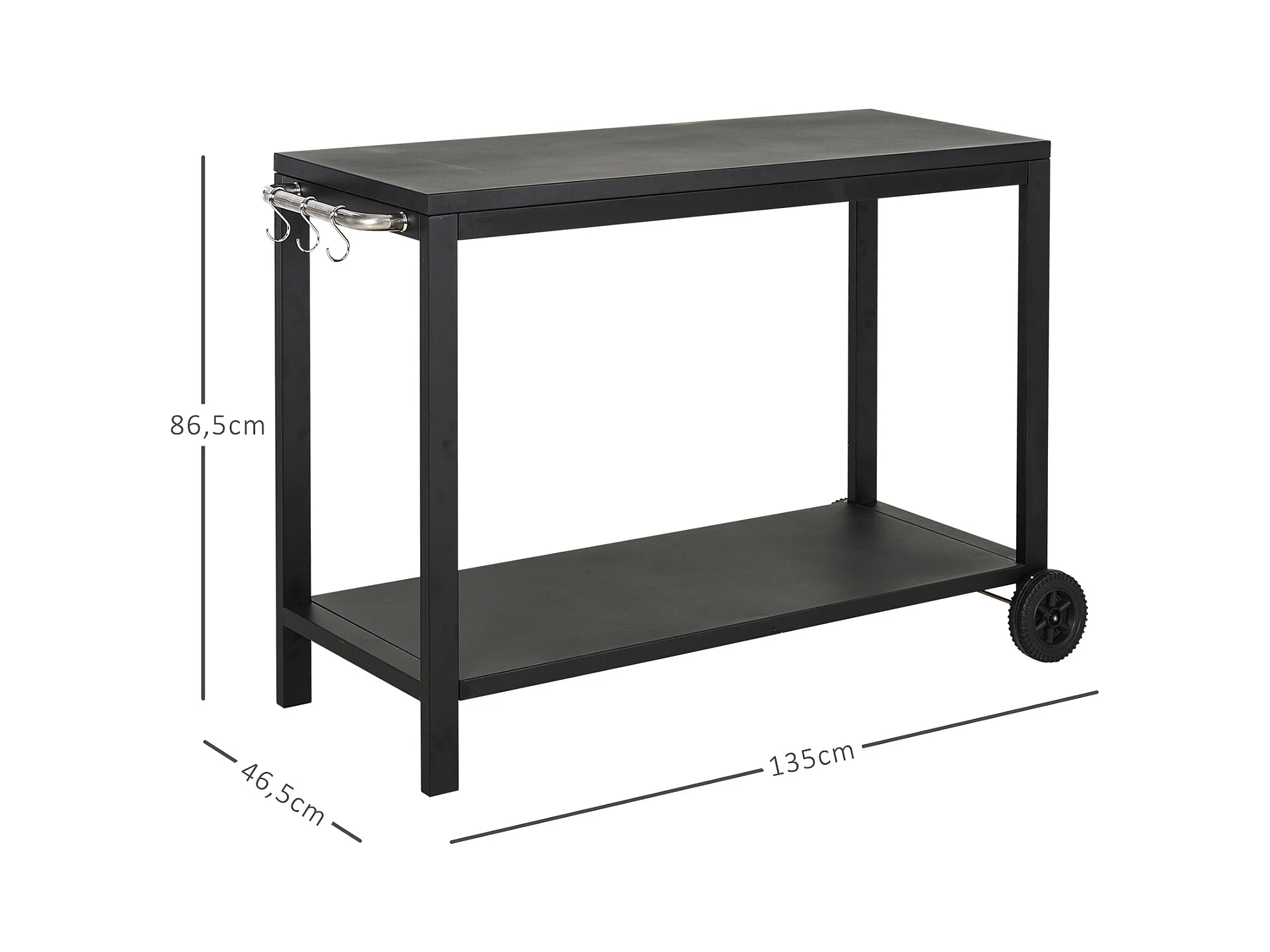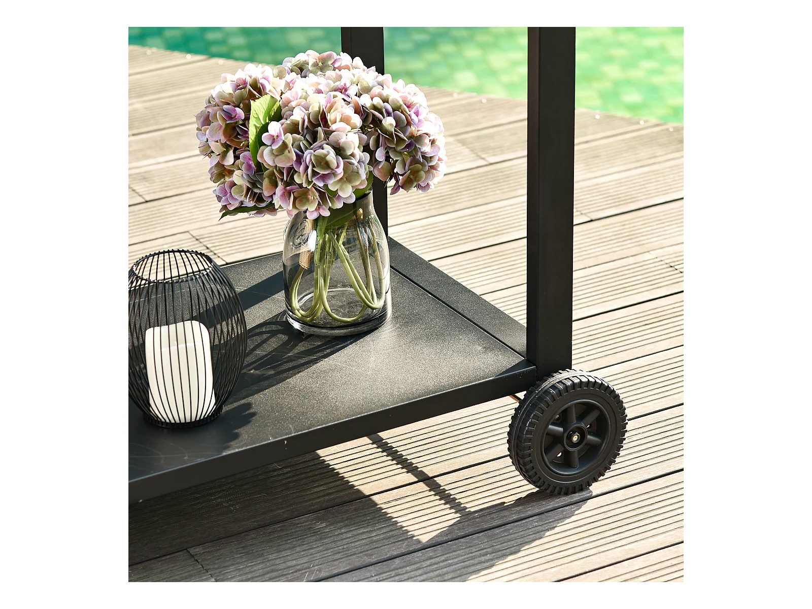 Desserte de jardin - desserte pour plancha - chariot de service à roulettes multi-rangements acier noir