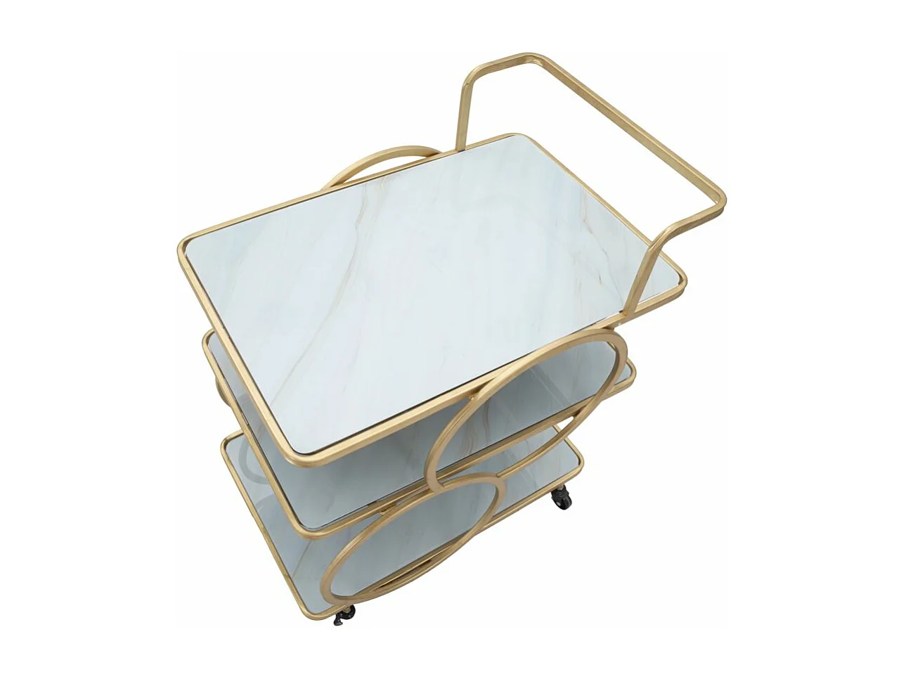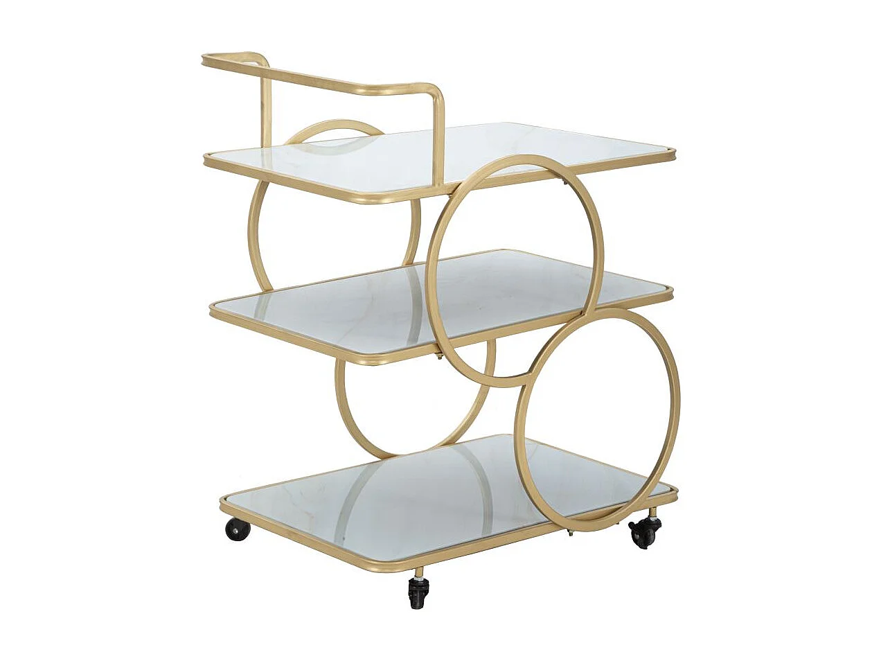 Desserte en métal doré avec 3 étagères en verre 64x46x79 cm