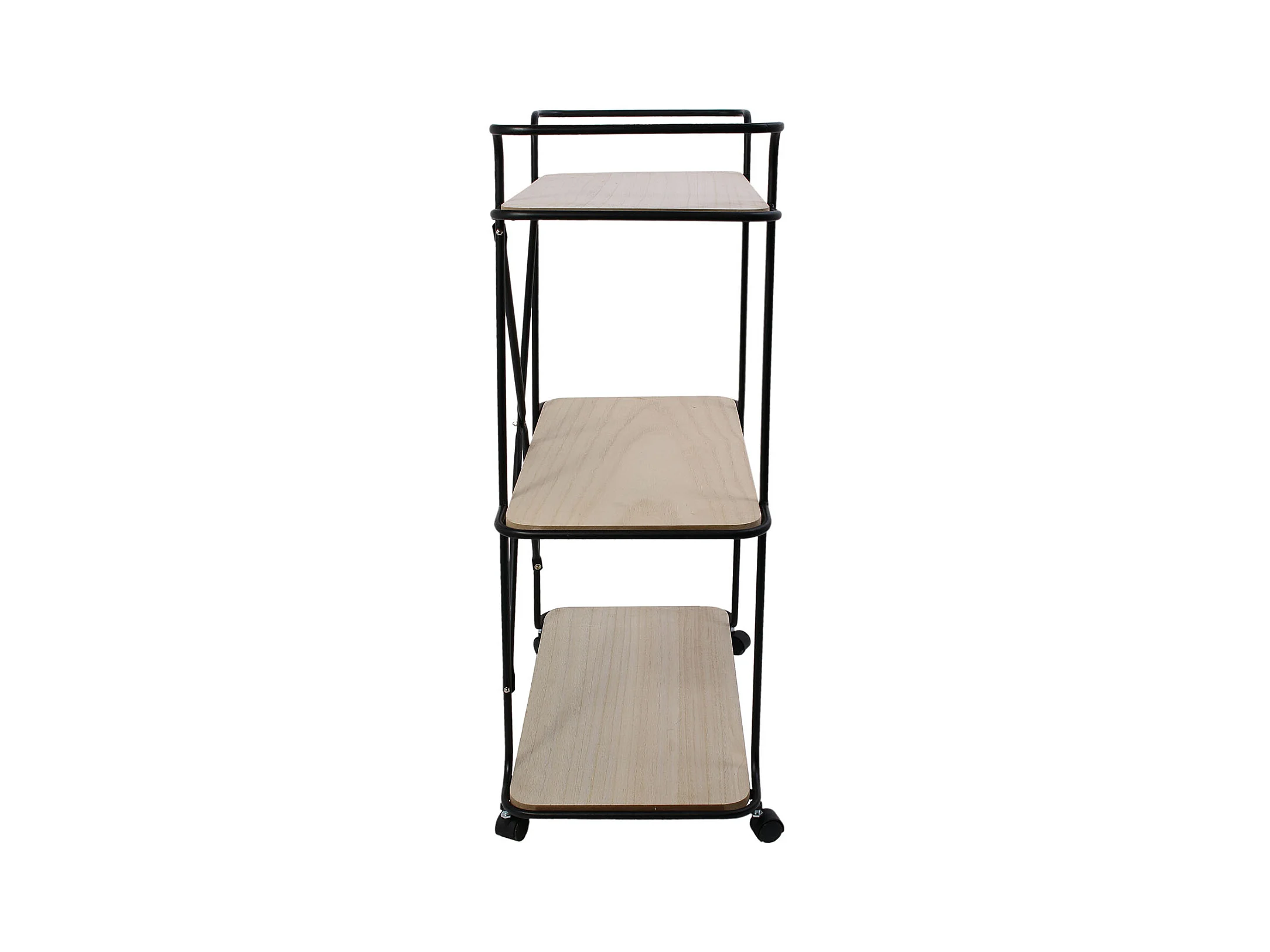 Chariot pliant à roulettes, table pliante roulante - Structure métallique noire, 2 niveaux en stratifié couleur Hêtre - 72*66*43 cm - BAUHAUS