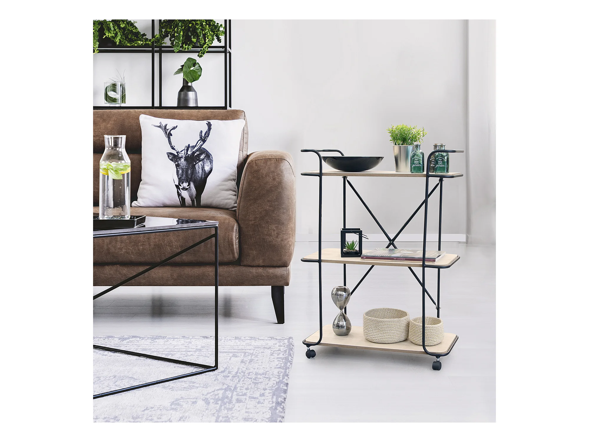 Desserte à roulettes en bois et métal