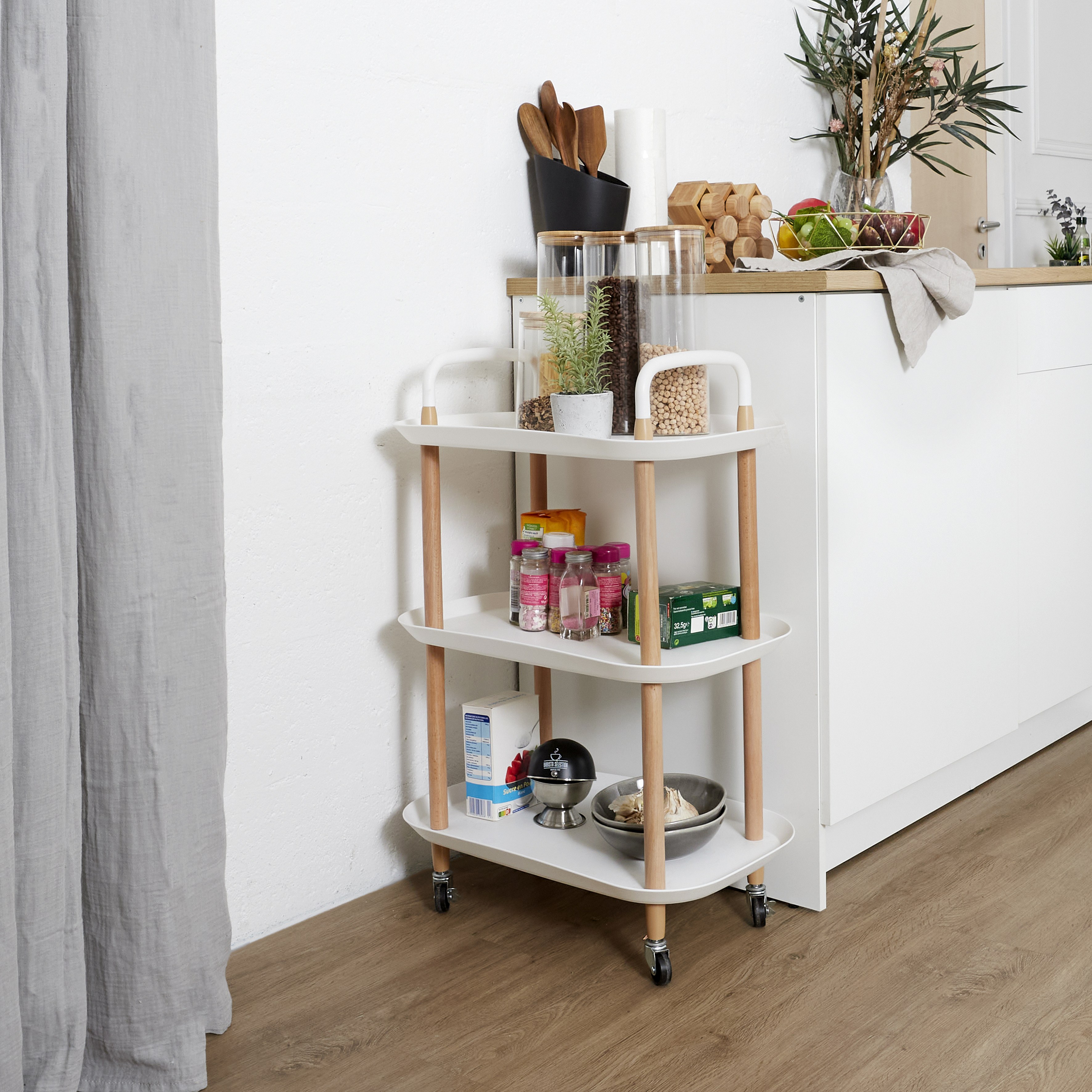 Chariot de service avec 3 étagères, à roulettes, en plastique, blanc (40.8x33.5x60.5 cm)