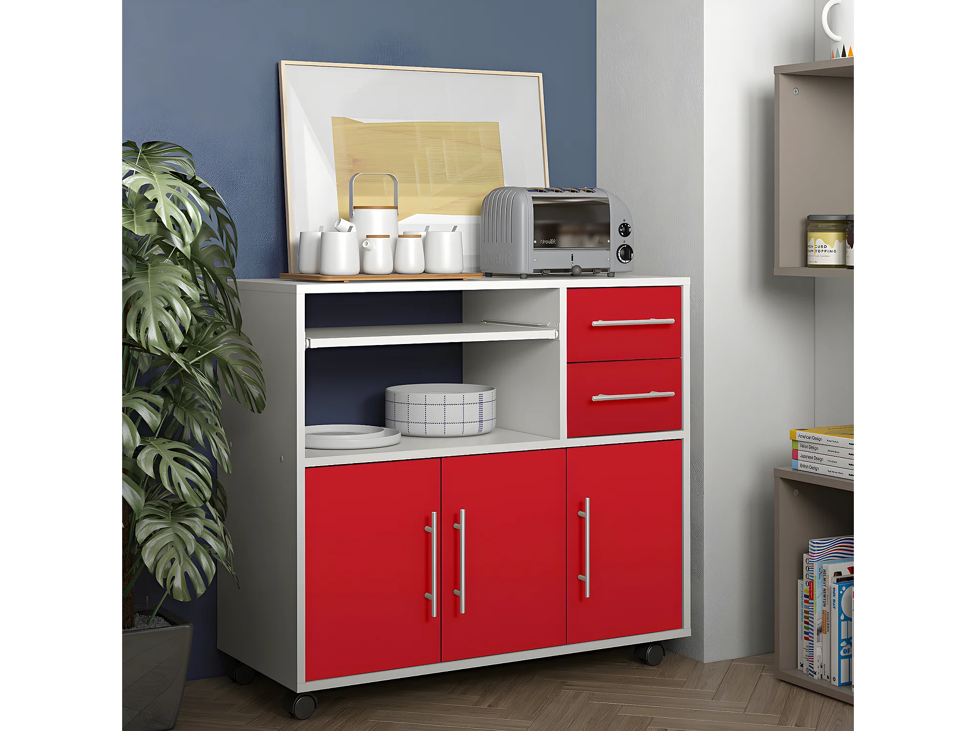 Desserte micro-onde MARIUS - blanc et rouge - SYMBIOSIS