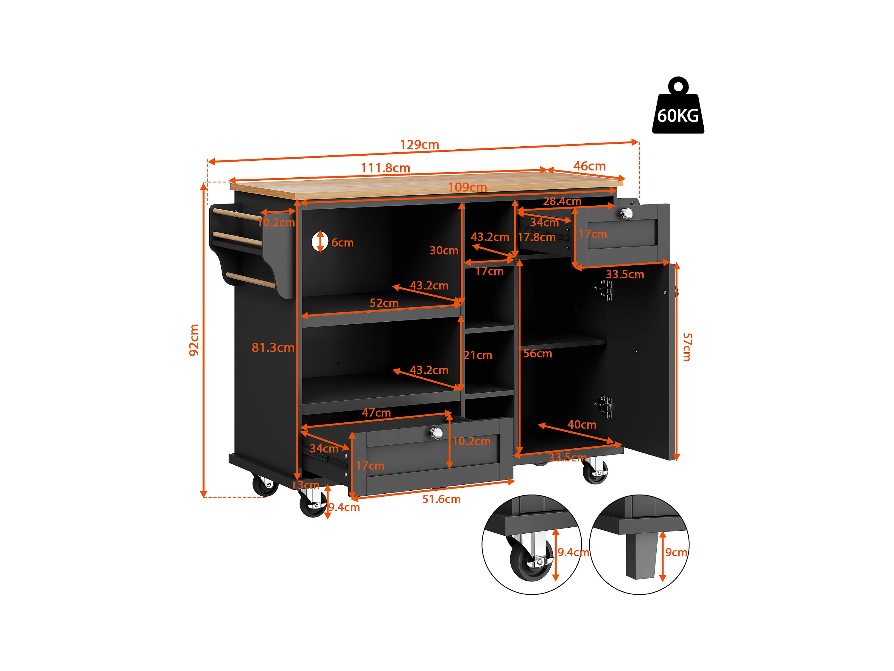 Desserte mobile de cuisine(129X46X92CM) multifonctionnelle avec rangement spacieux - noir