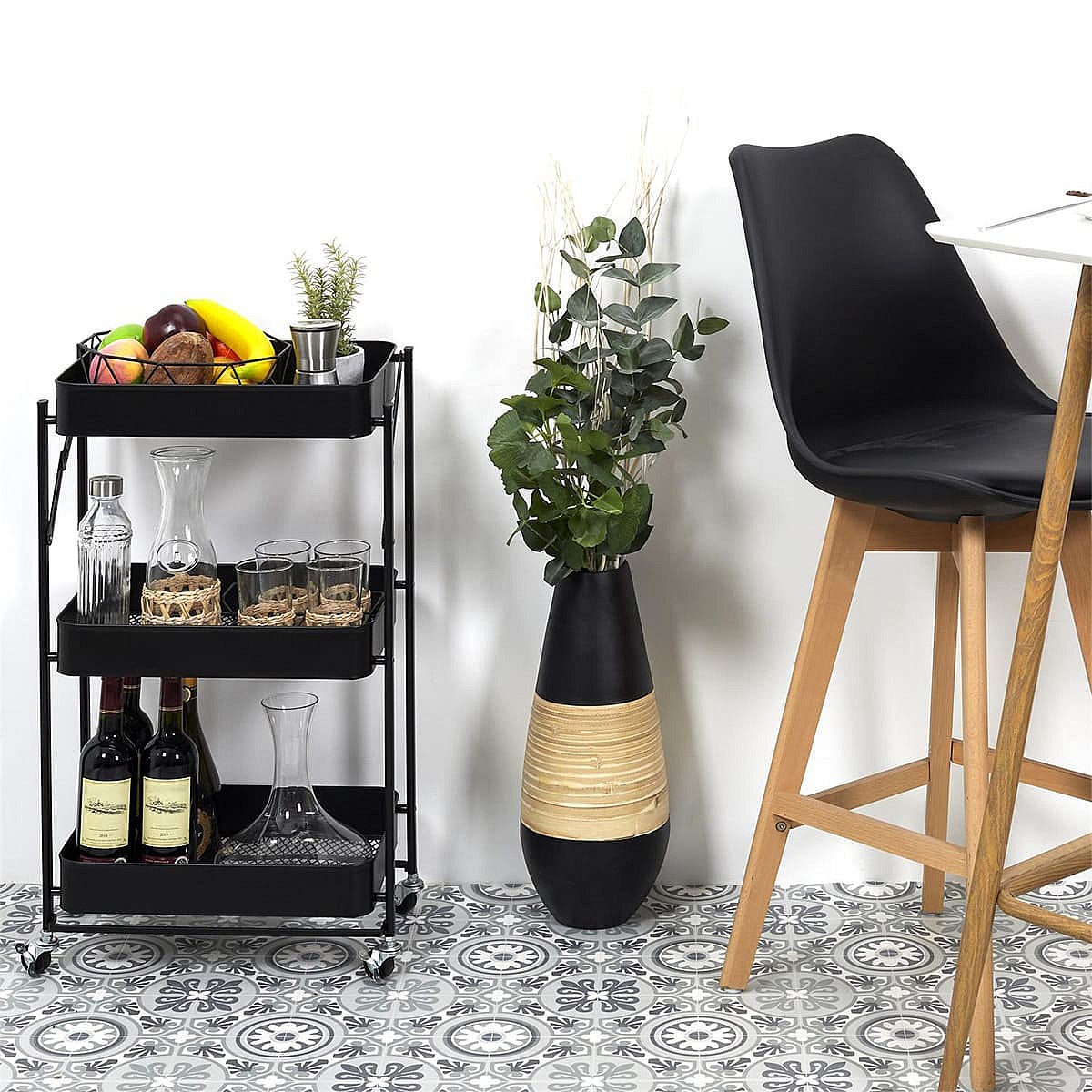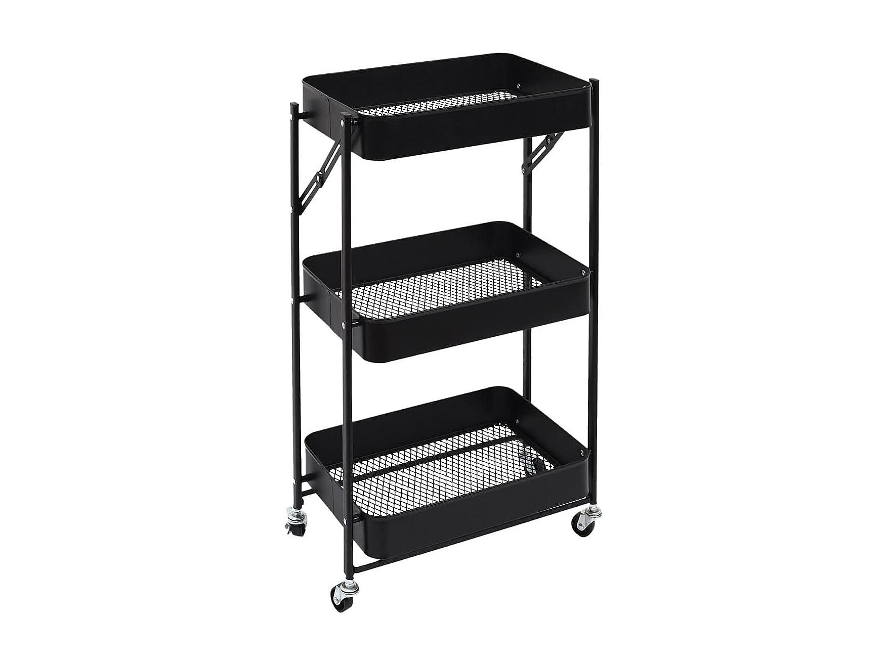 Desserte Pliable à Roulettes Industrielle en Métal Noir 3 Niveaux - MIKAS