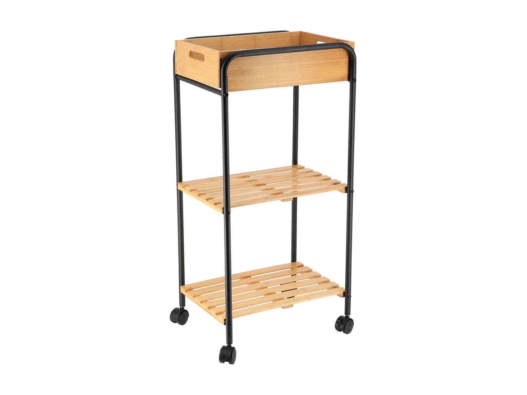 Desserte roulante 3 Niveaux en métal noir et bambou