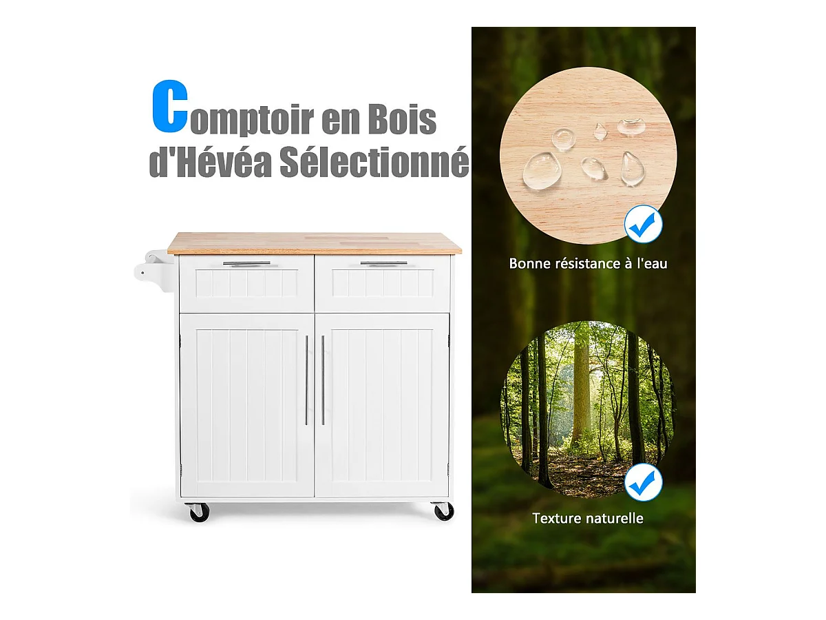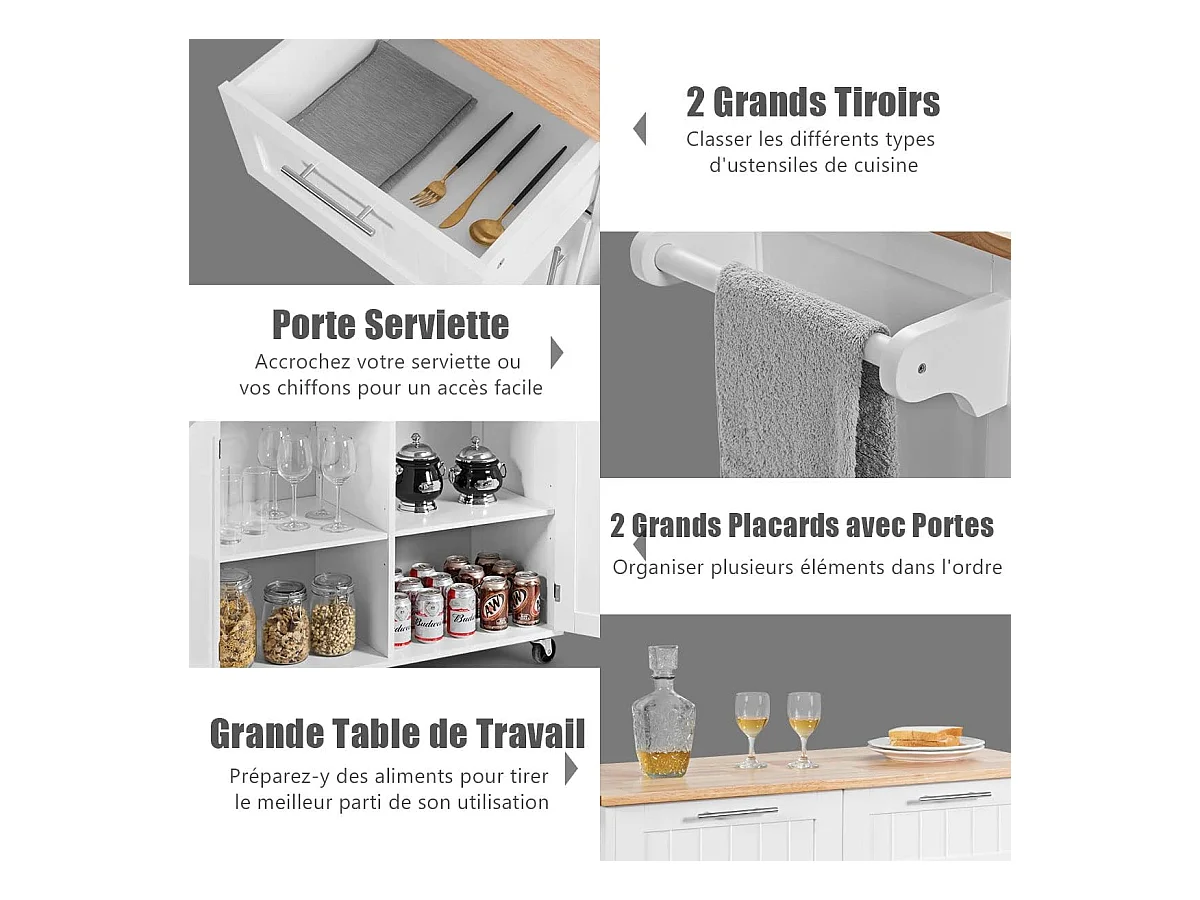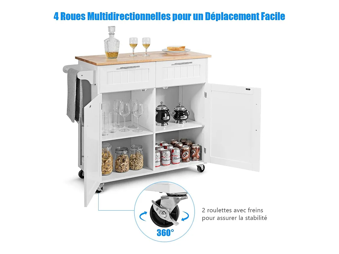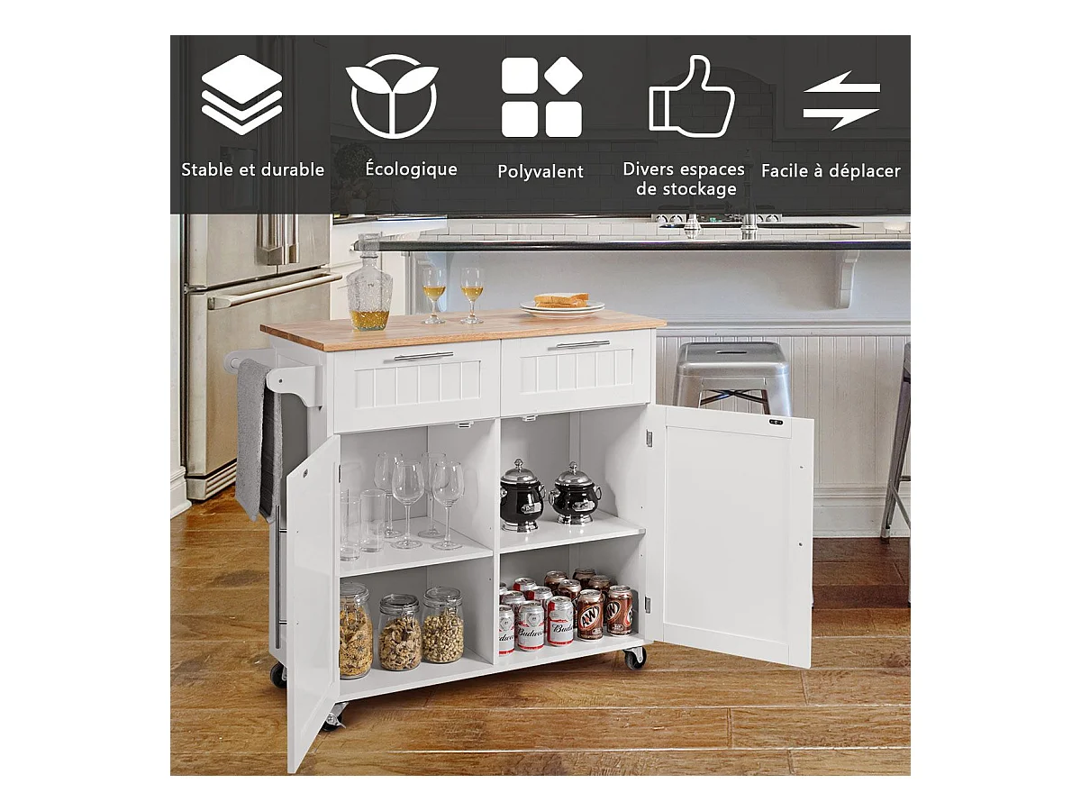 Dessertes îlot central cuisine avec table 4 roues universelles porte-serviettes, 94x41x94cm