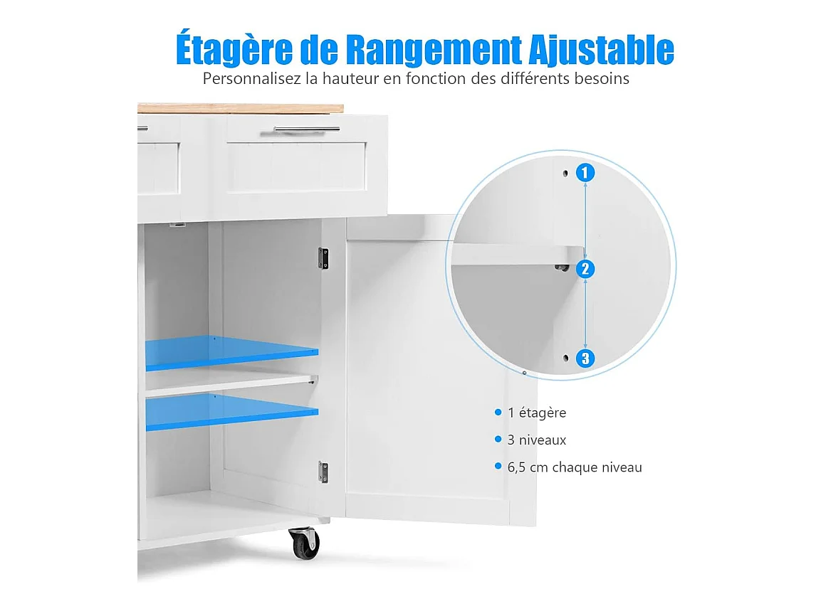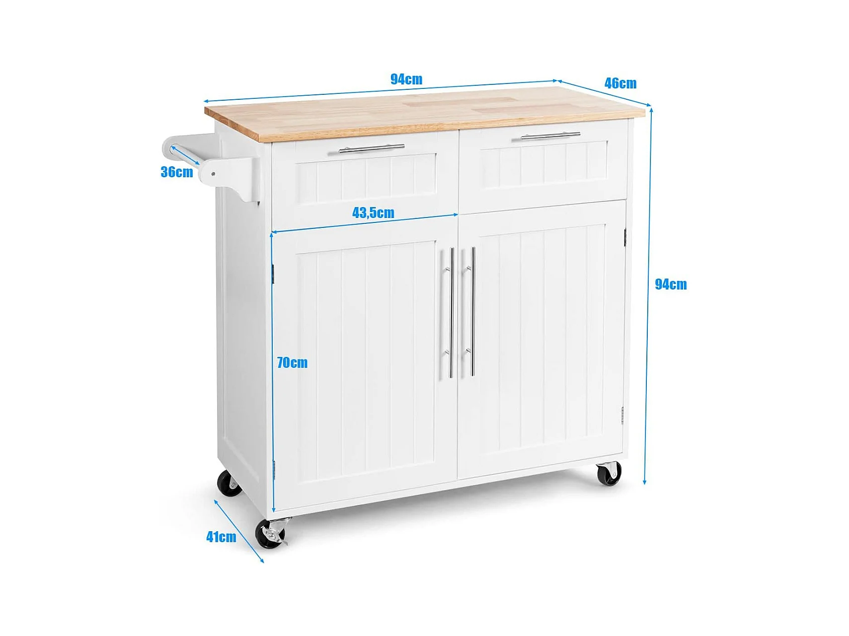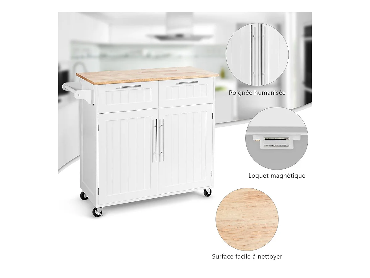 Dessertes îlot central cuisine avec table 4 roues universelles porte-serviettes, 94x41x94cm