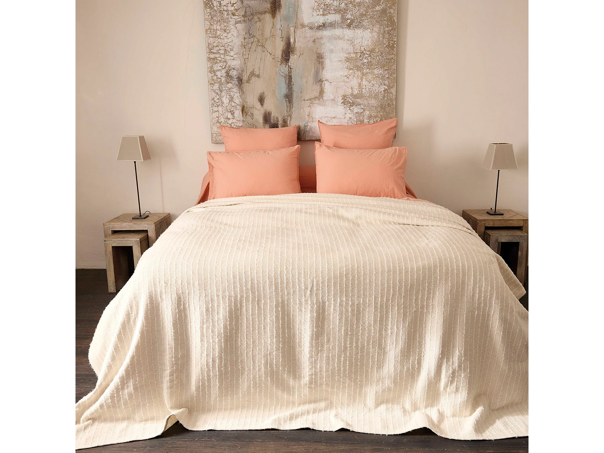 Dessus de lit 180x250 cm coton et lin mélangés ETRETAT écru naturel