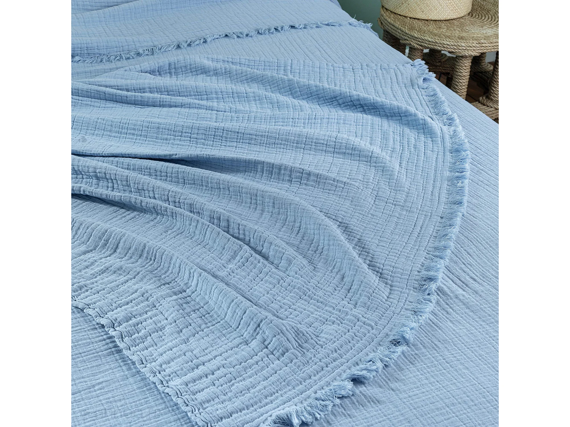 Dessus de lit 270x250 cm BREHAT 100% gaze de coton bleu ciel