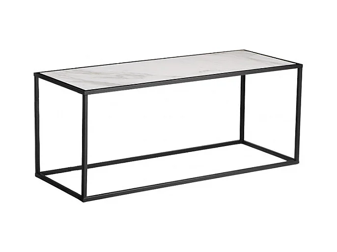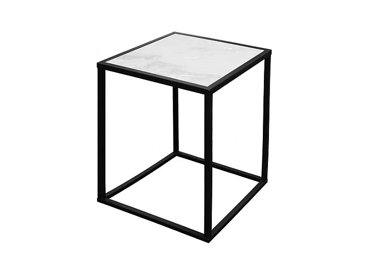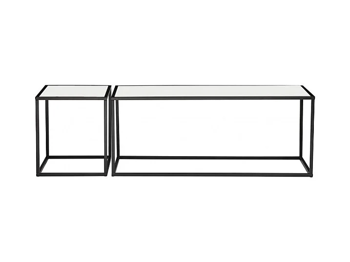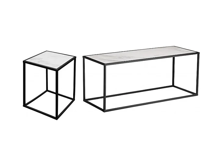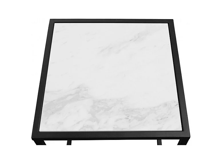 2 tables d'appoint en céramique marbré et verre pieds métal - PAROS
