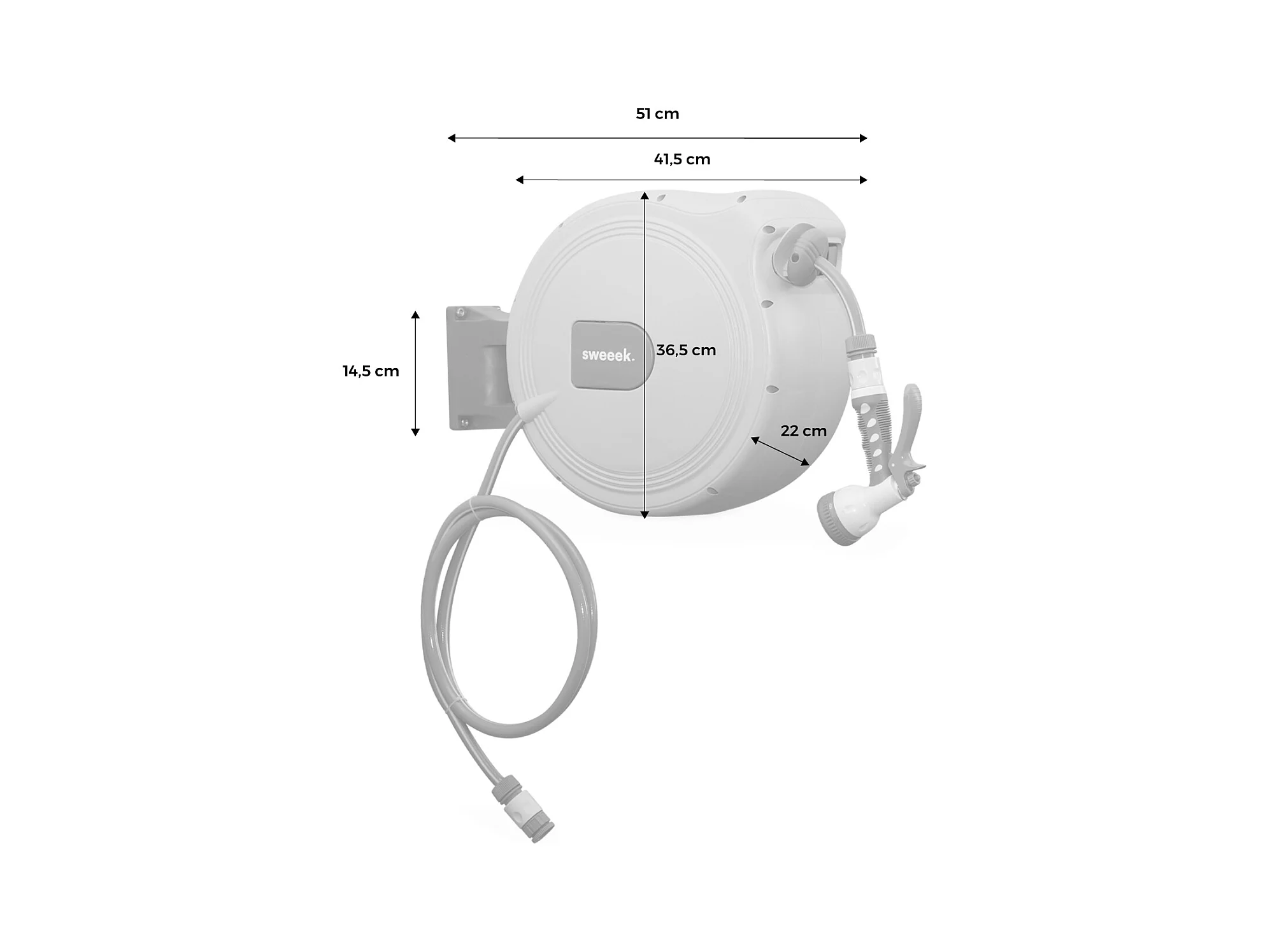 Dévidoir mural automatique 30m. enrouleur avec tuyau d’arrosage. raccord et pistolet d'arrosage fournis