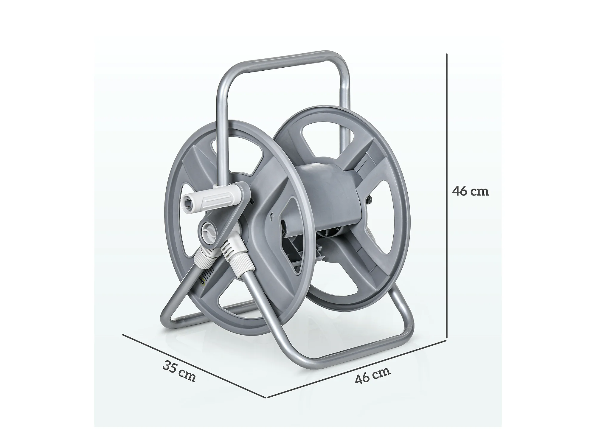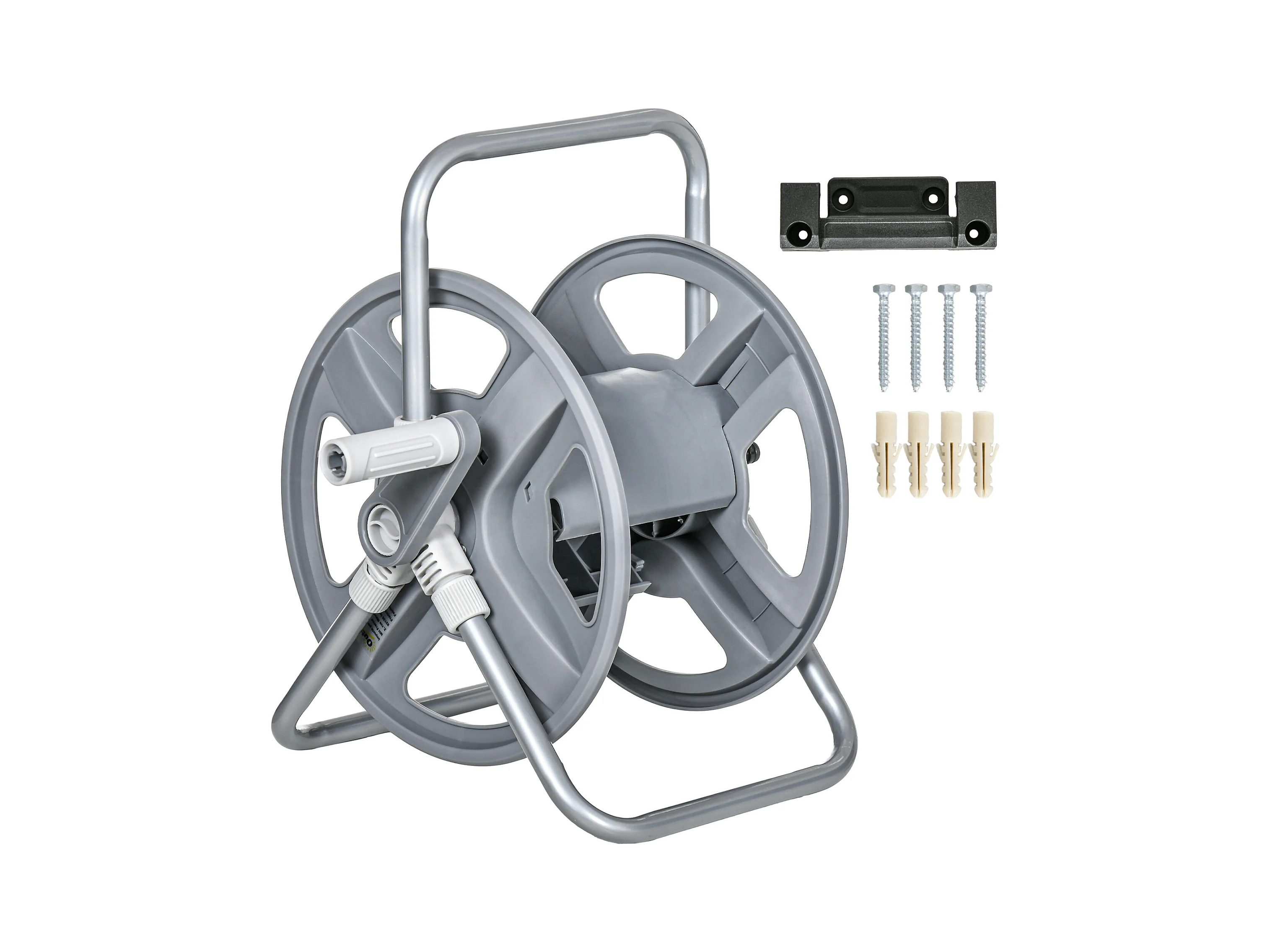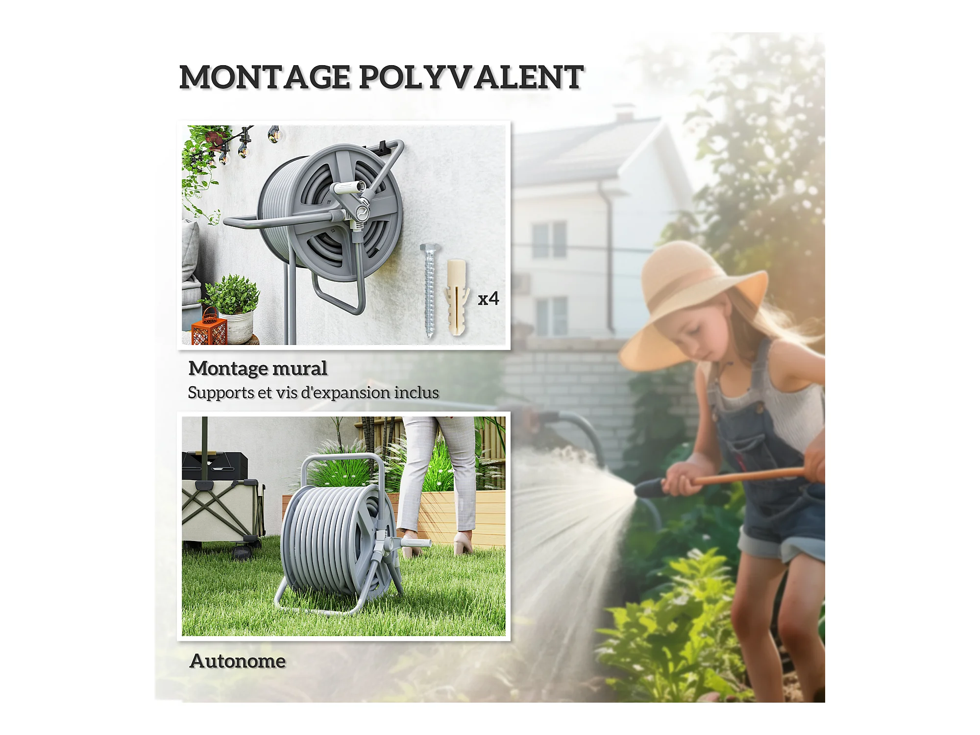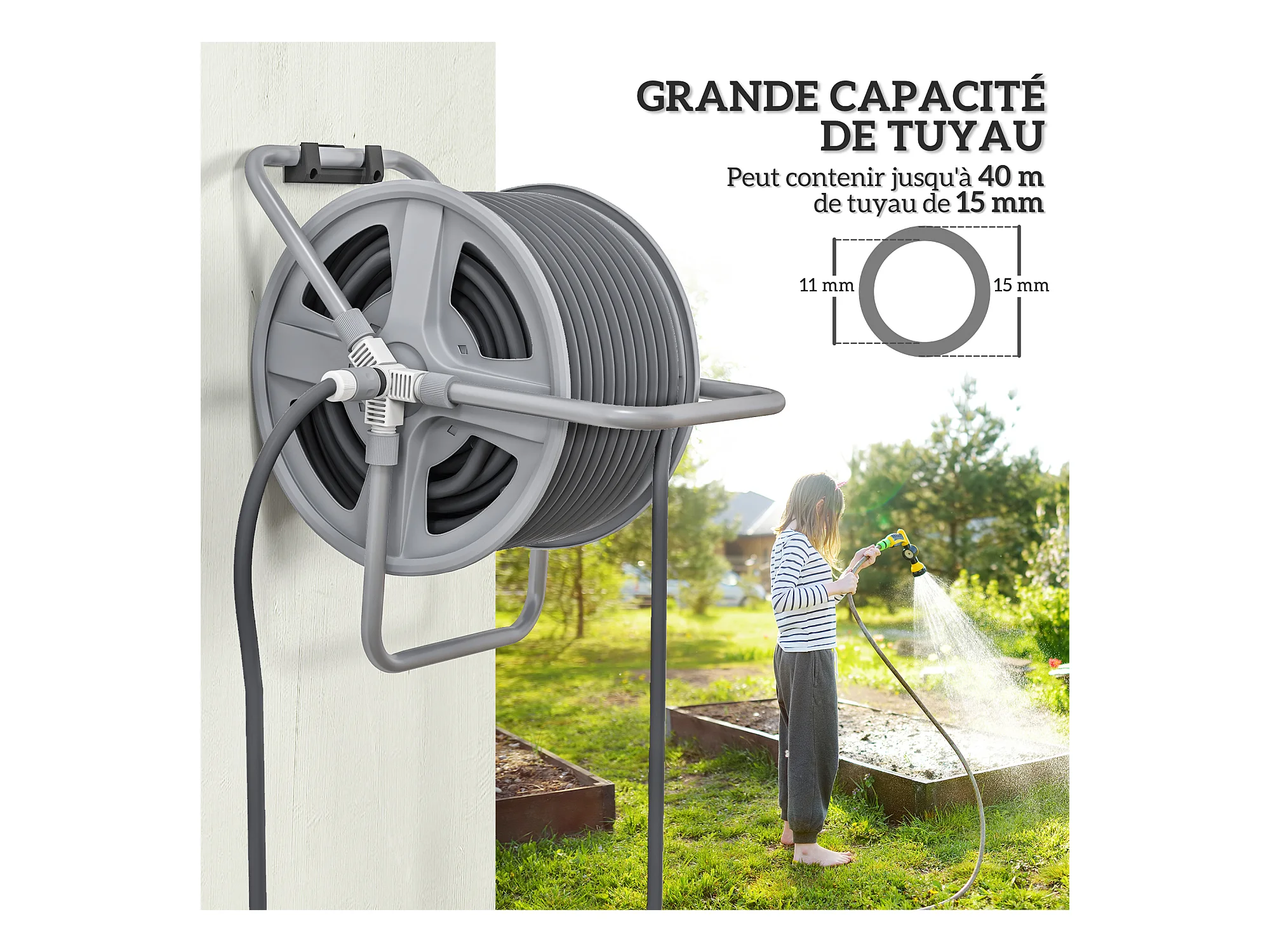 Dévidoir sur pied ou mural - enrouleur tuyau 40 m - support mural intégré - gris
