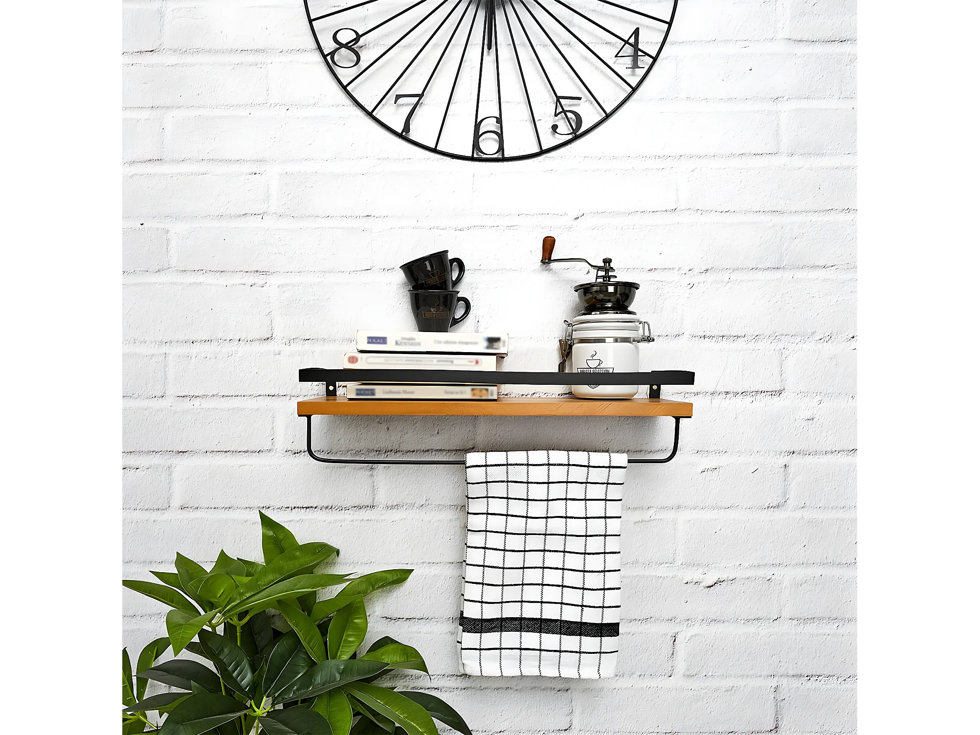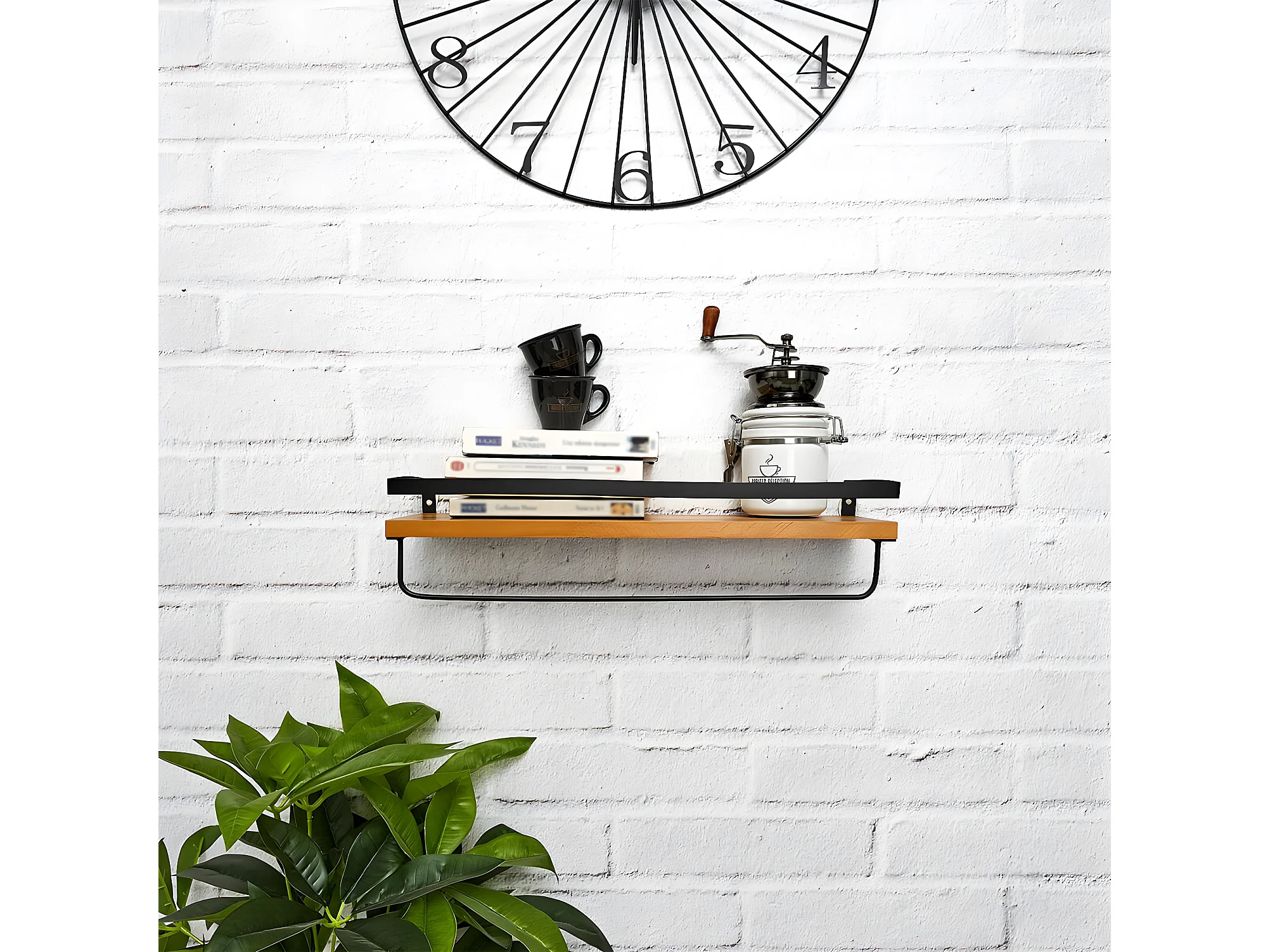 DEVIK - Etagère Murale Industrielle en Pin Massif et Métal Noir