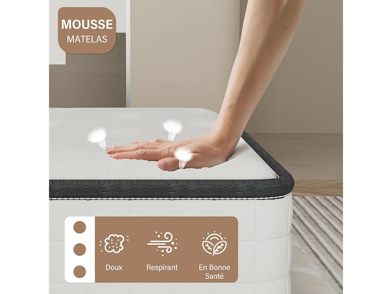 Matelas en Mousse à Mémoire de Forme 90x190 cm, 25 cm Épaisseur
