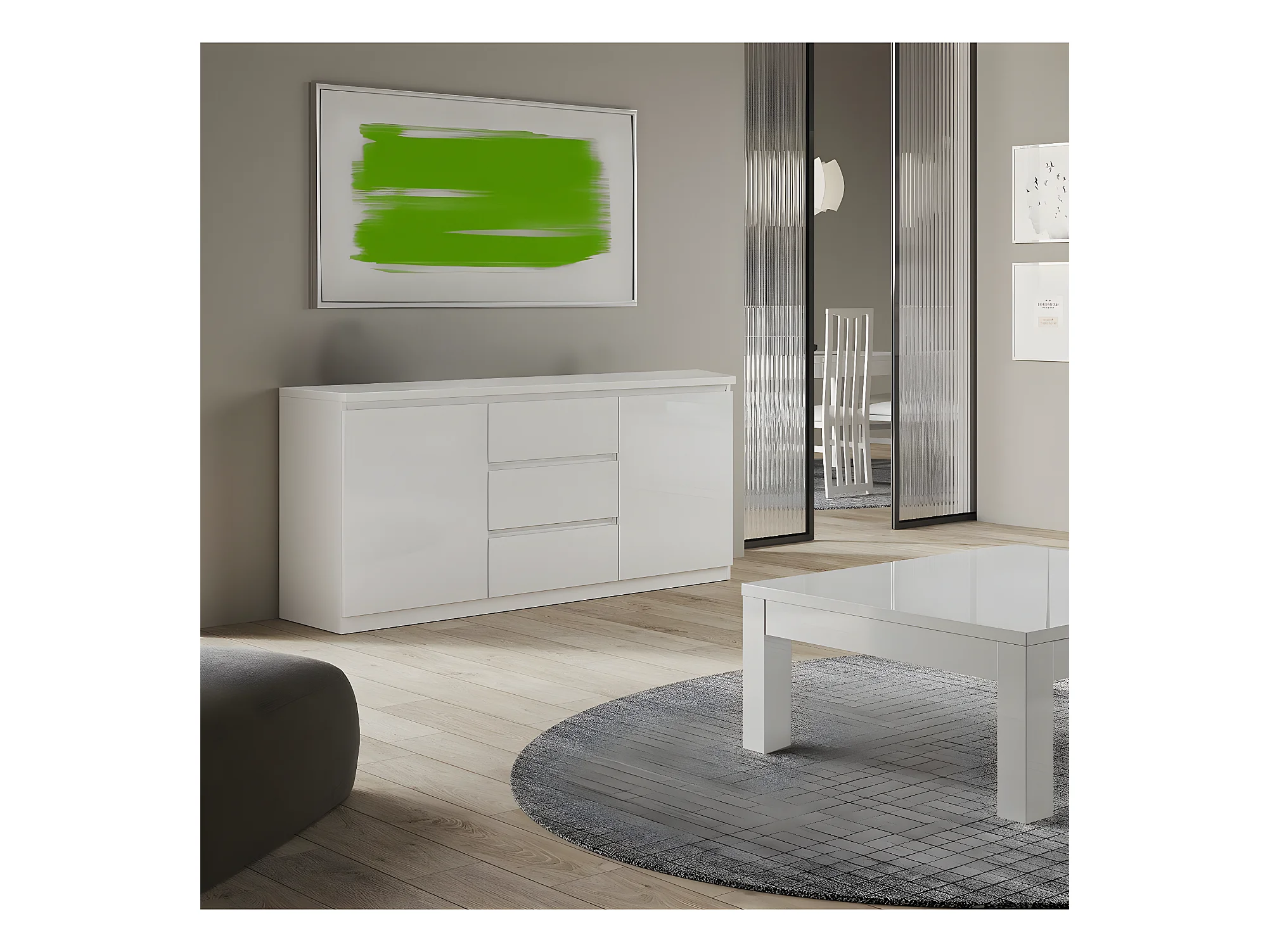 DEYTON - Buffet 2 Portes 3 Tiroirs Laqué Blanc Brillant