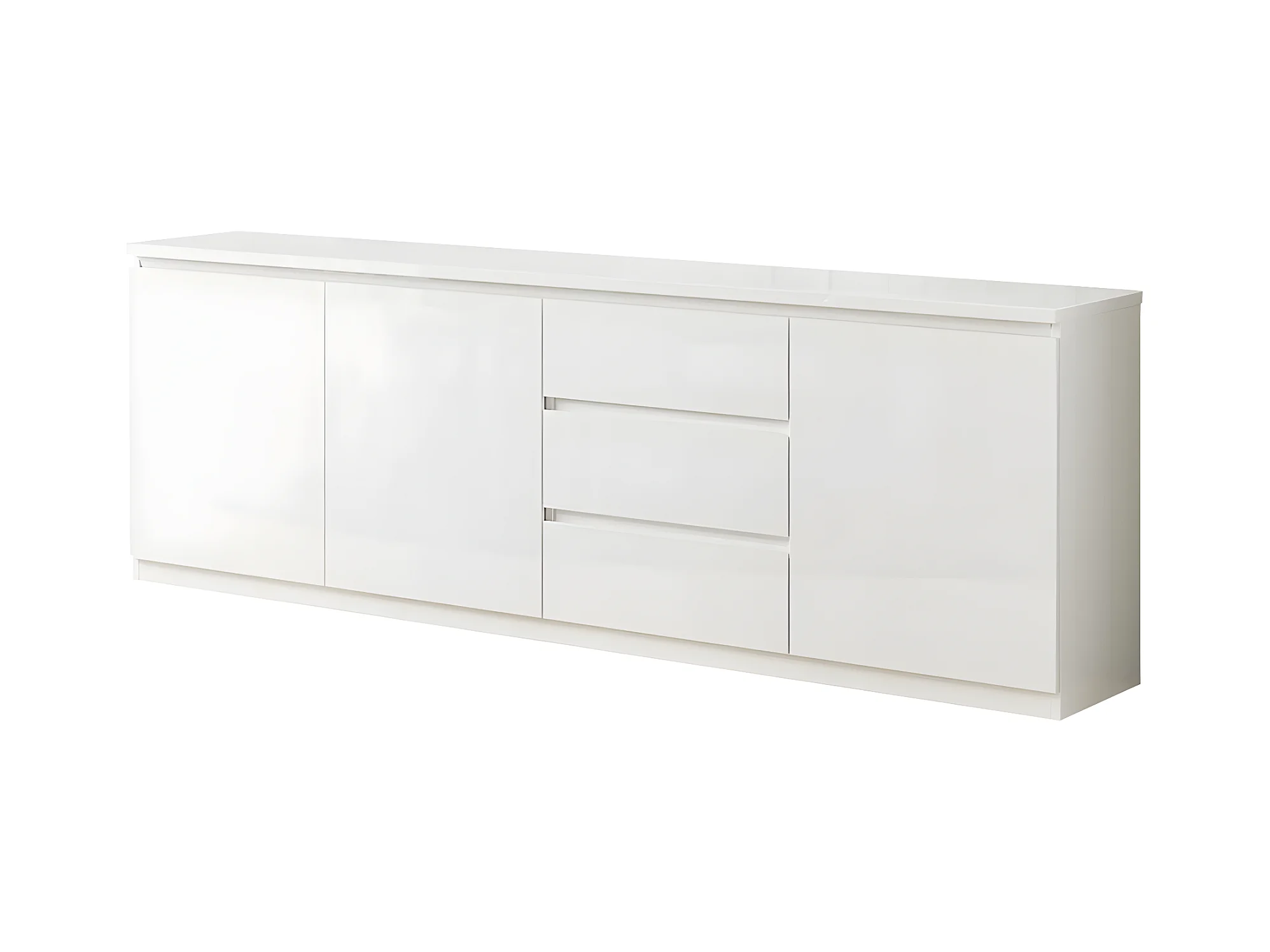 DEYTON - Buffet 3 Portes 3 Tiroirs Laqué Blanc Brillant