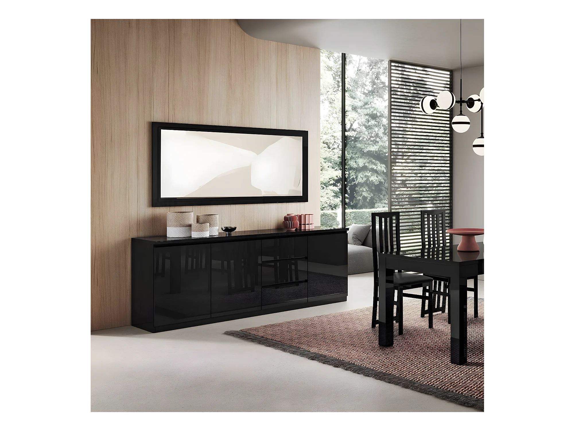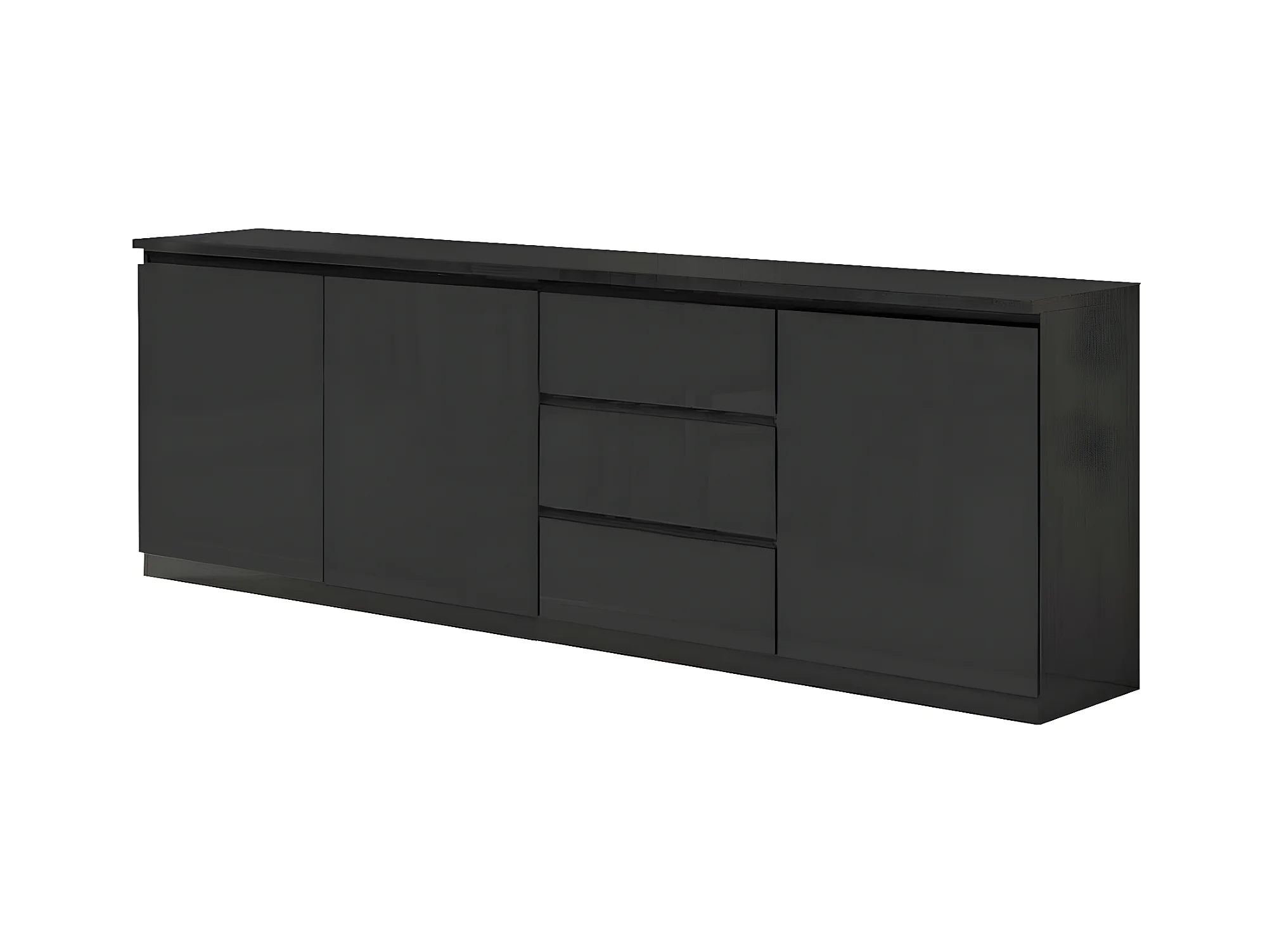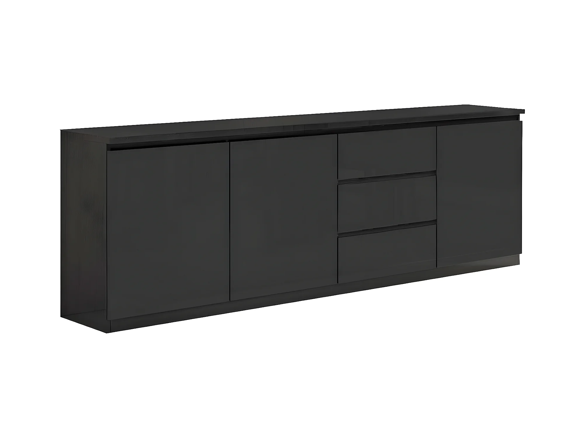DEYTON - Buffet 3 Portes 3 Tiroirs Laqué Noir Brillant
