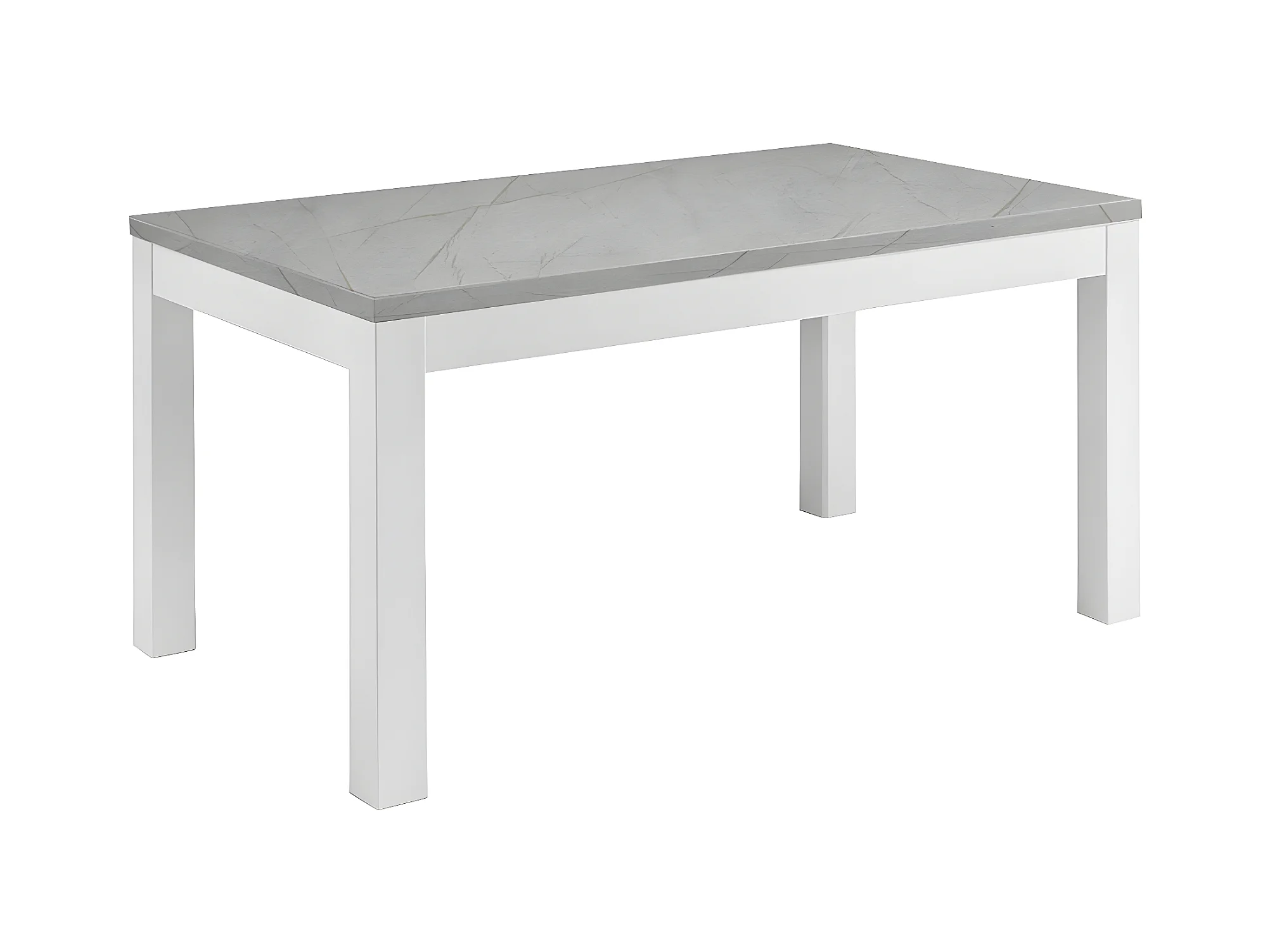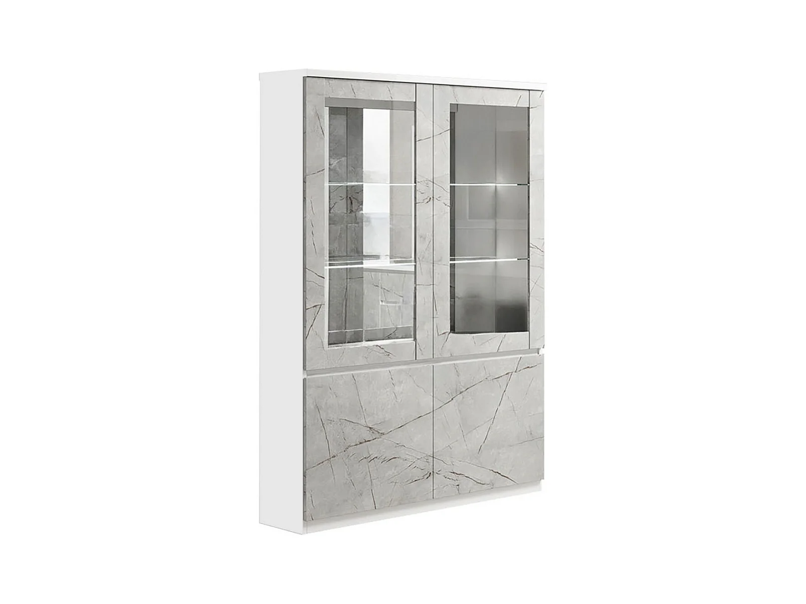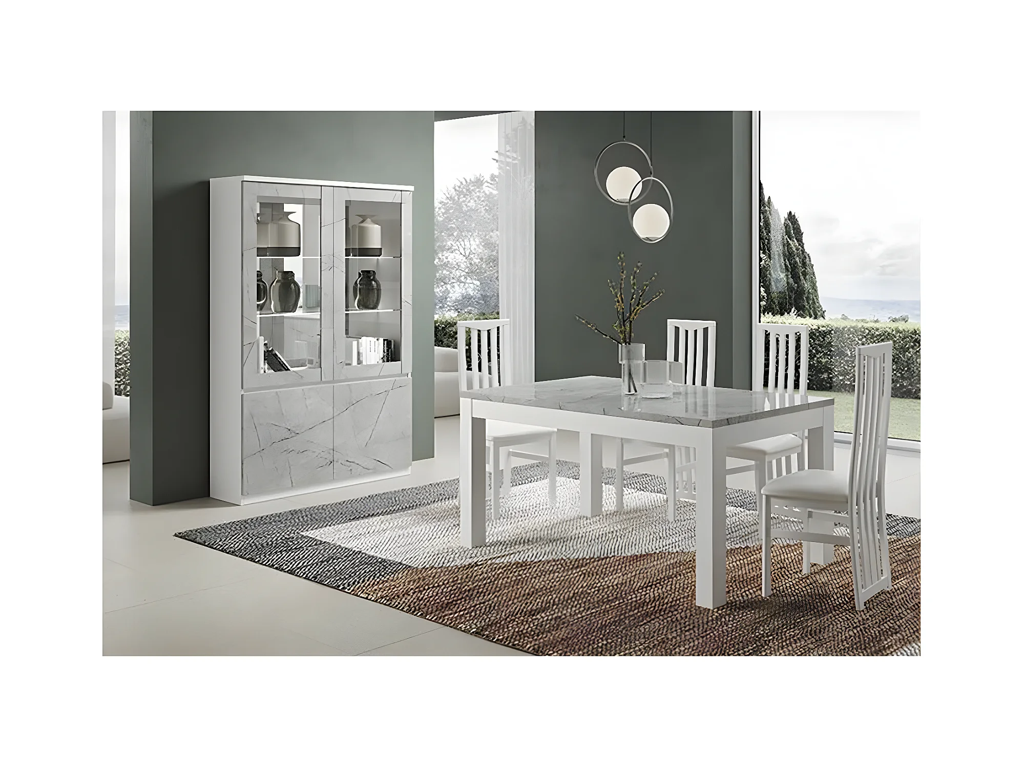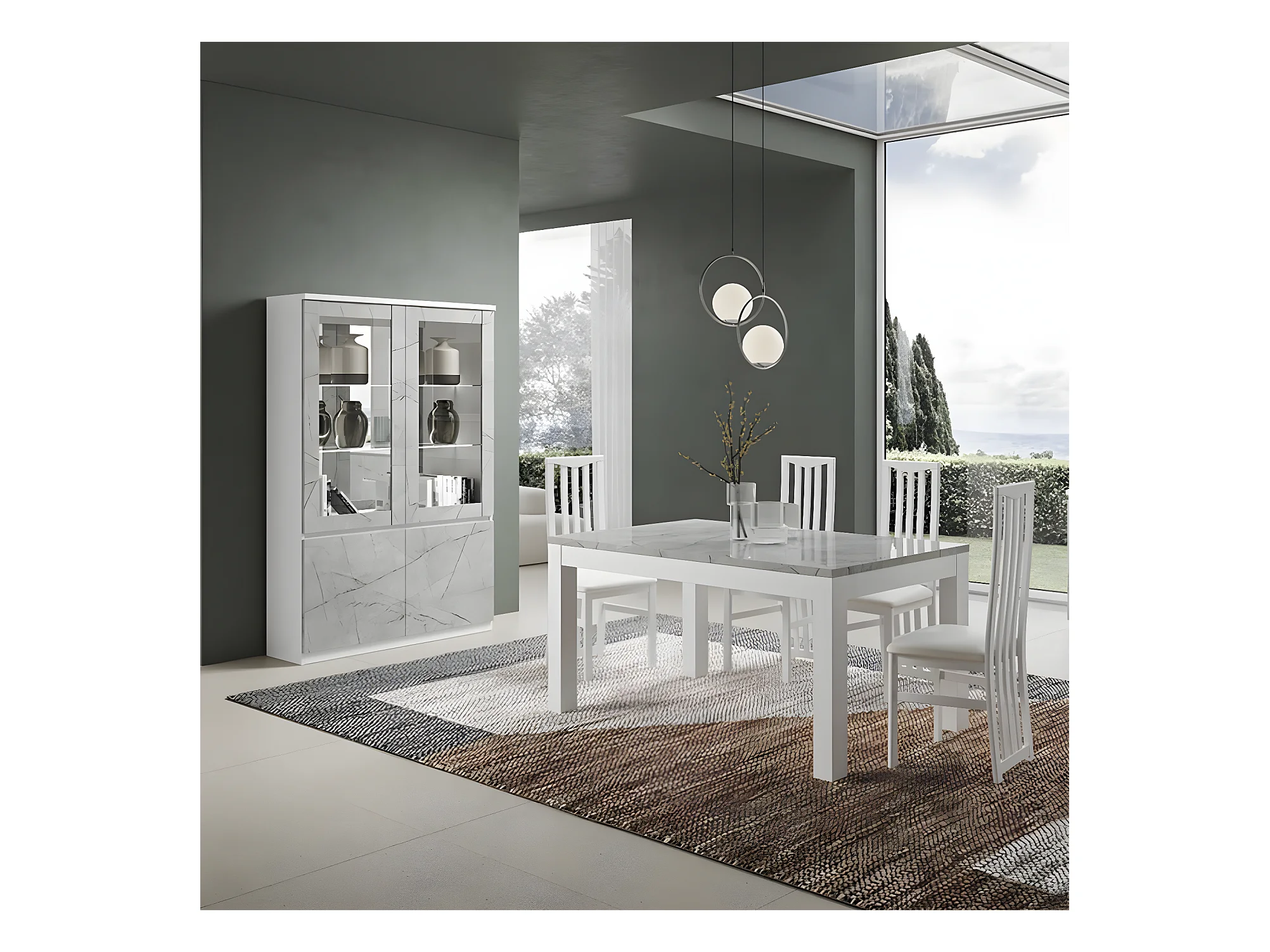 DEYTON - Ensemble Séjour Blanc et Gris Marbré Table 190cm + Vitrine avec Leds