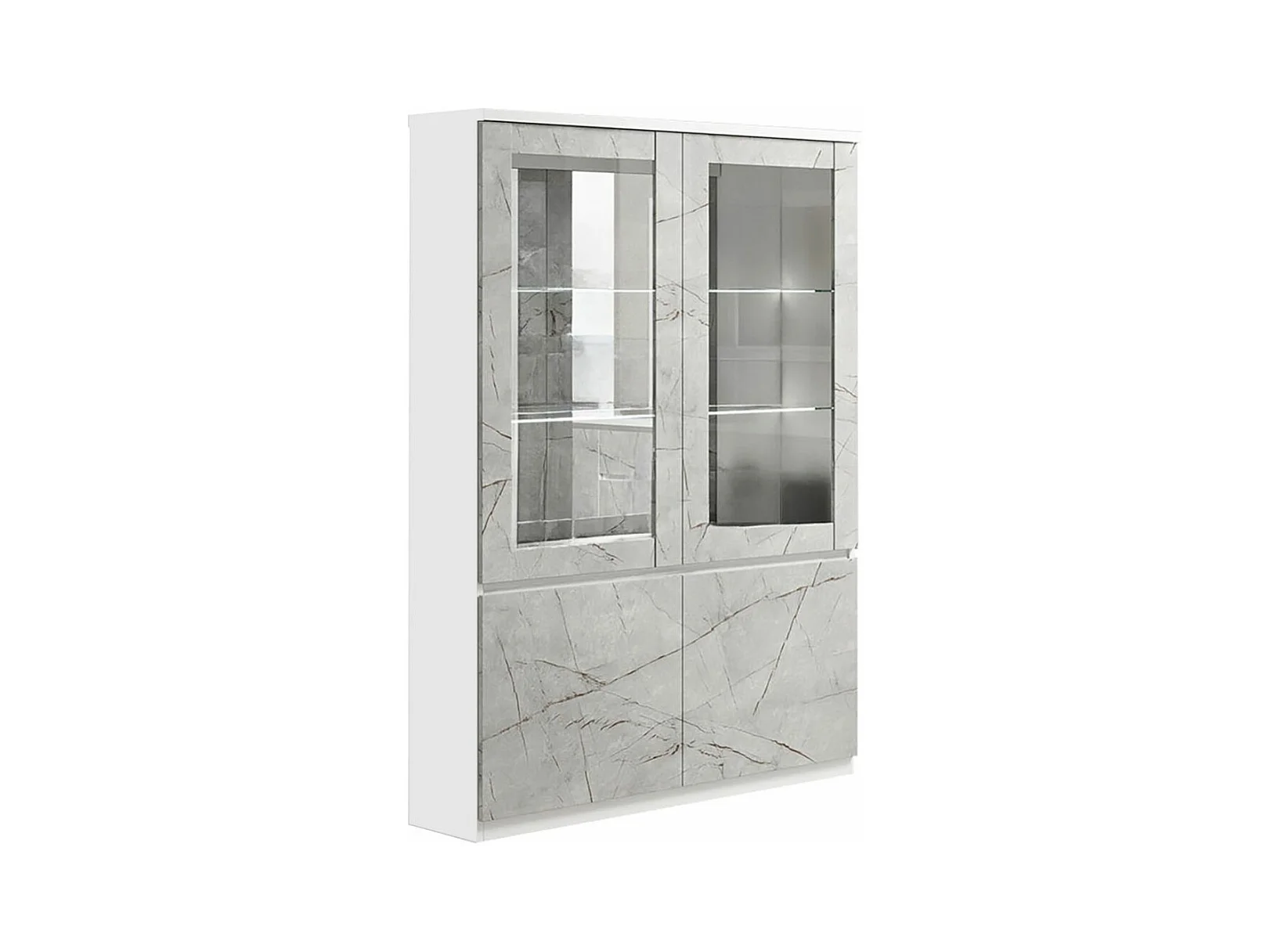 DEYTON - Ensemble Séjour Complet Blanc et Gris Marbré Table 190cm + Buffet + Vitrine avec Leds
