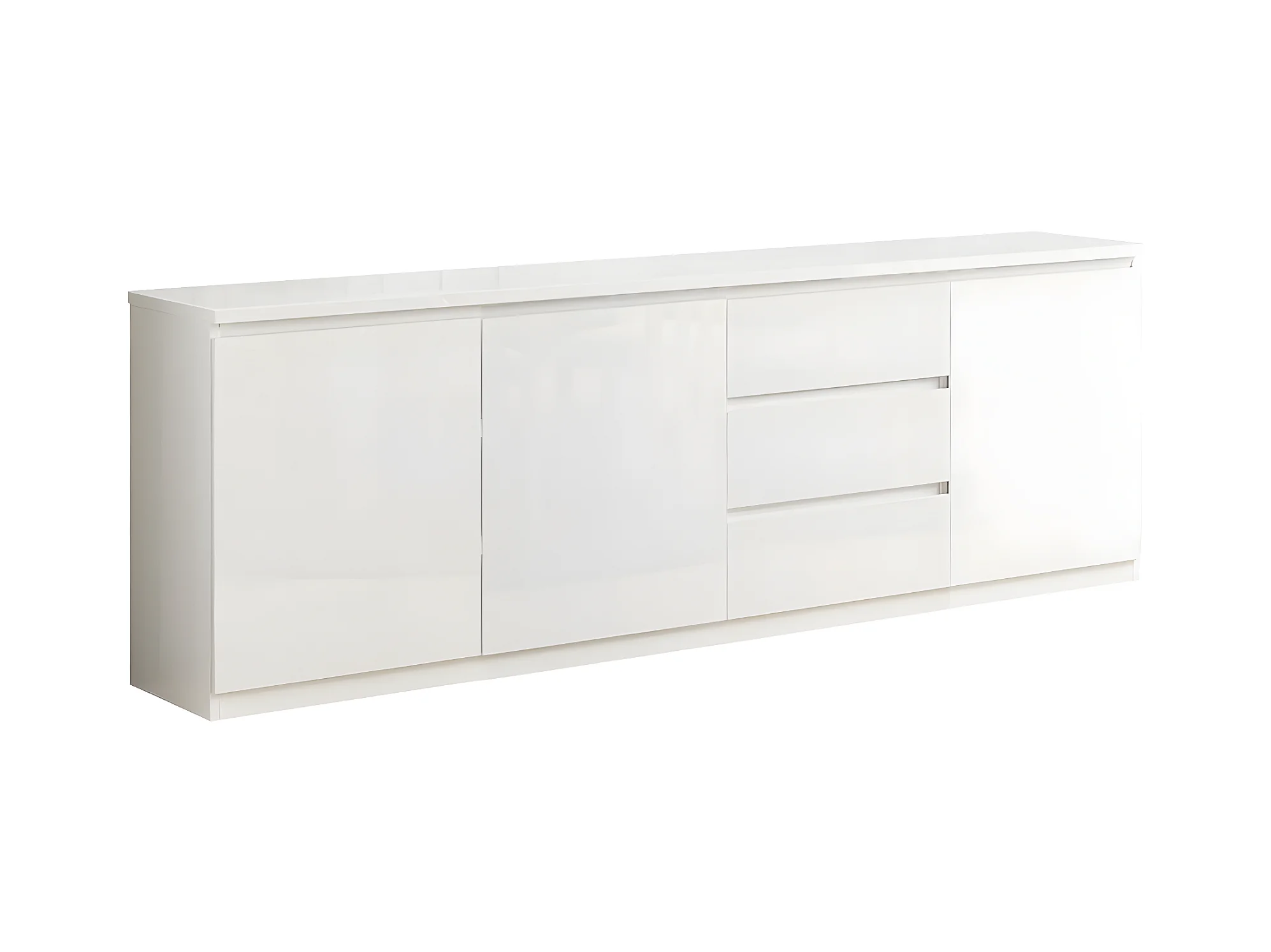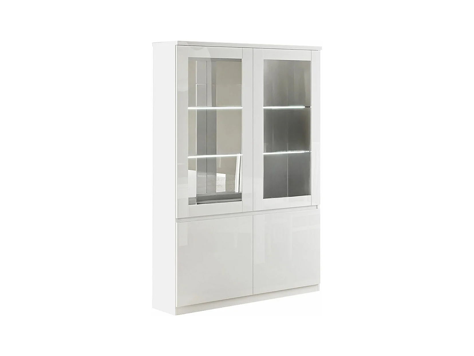 DEYTON - Ensemble Séjour Complet Laqué Blanc Table 190cm + Buffet + Vitrine avec Leds