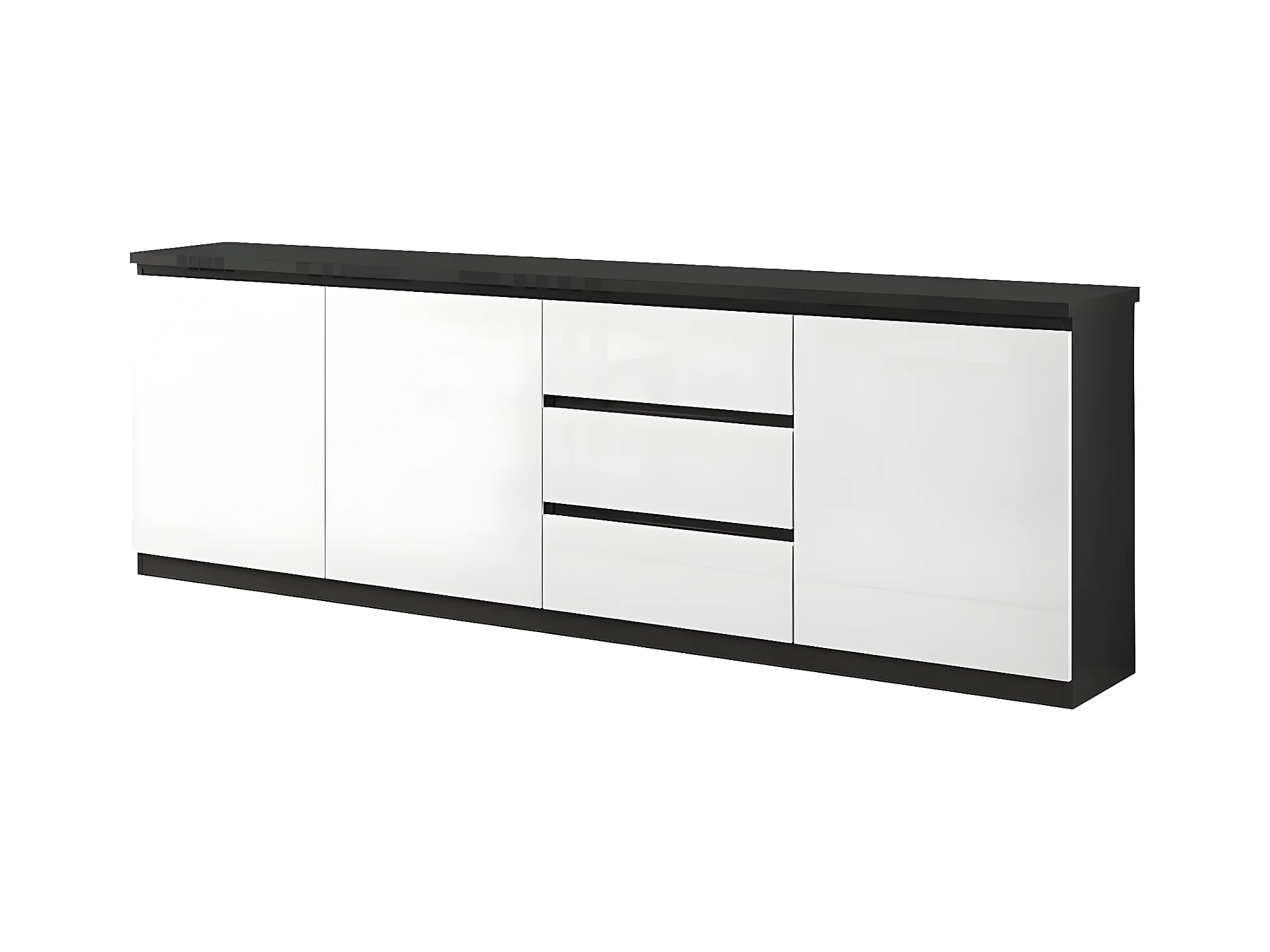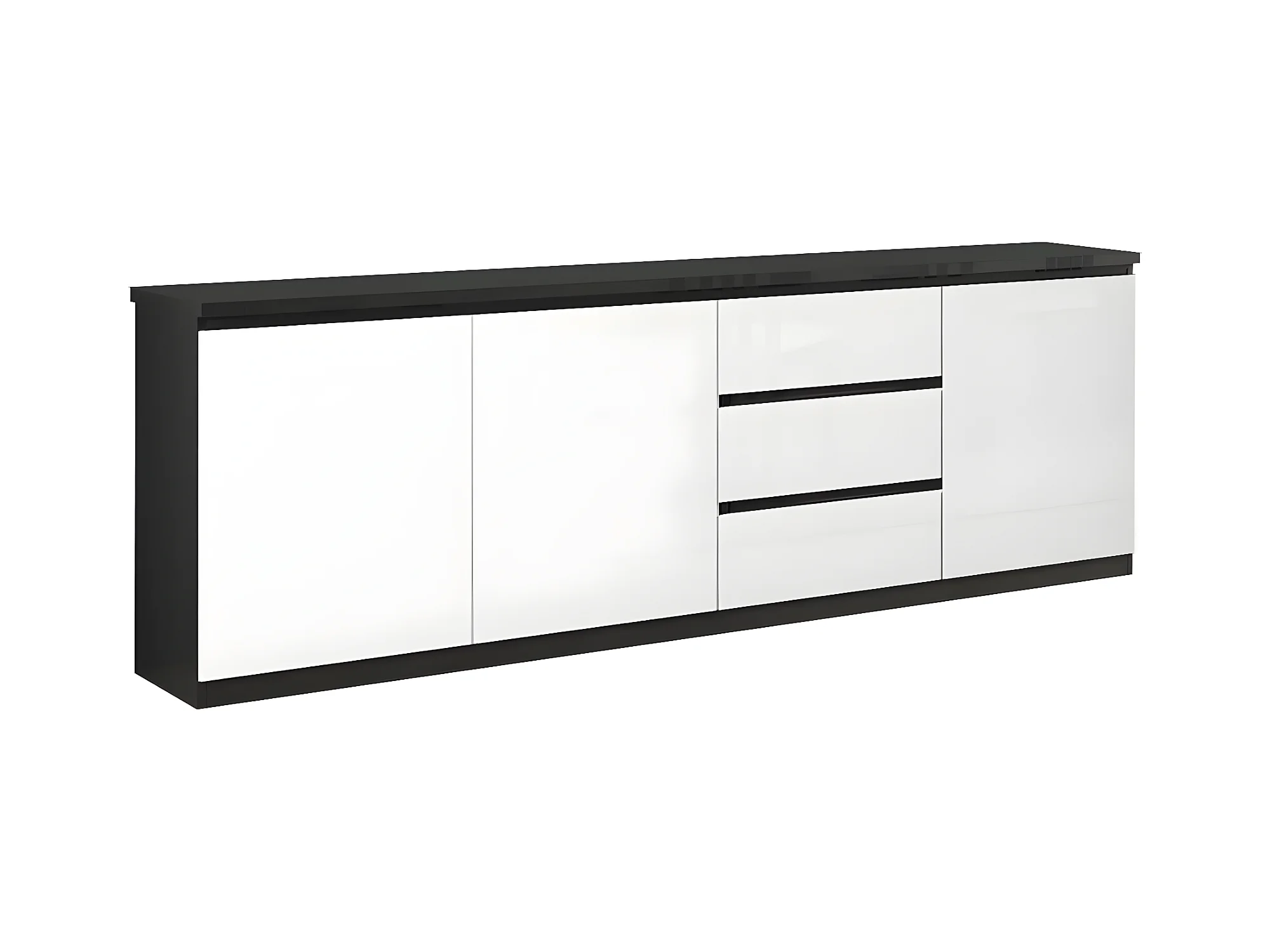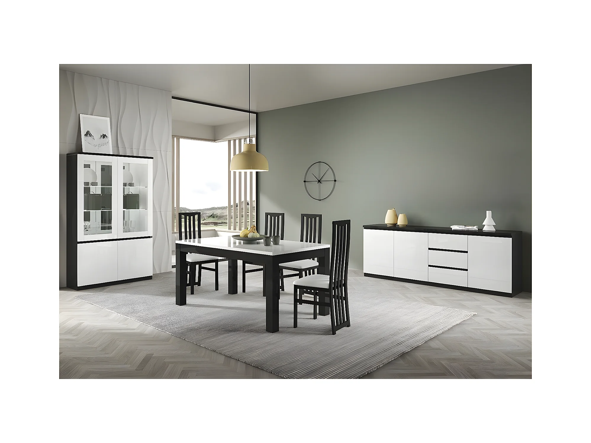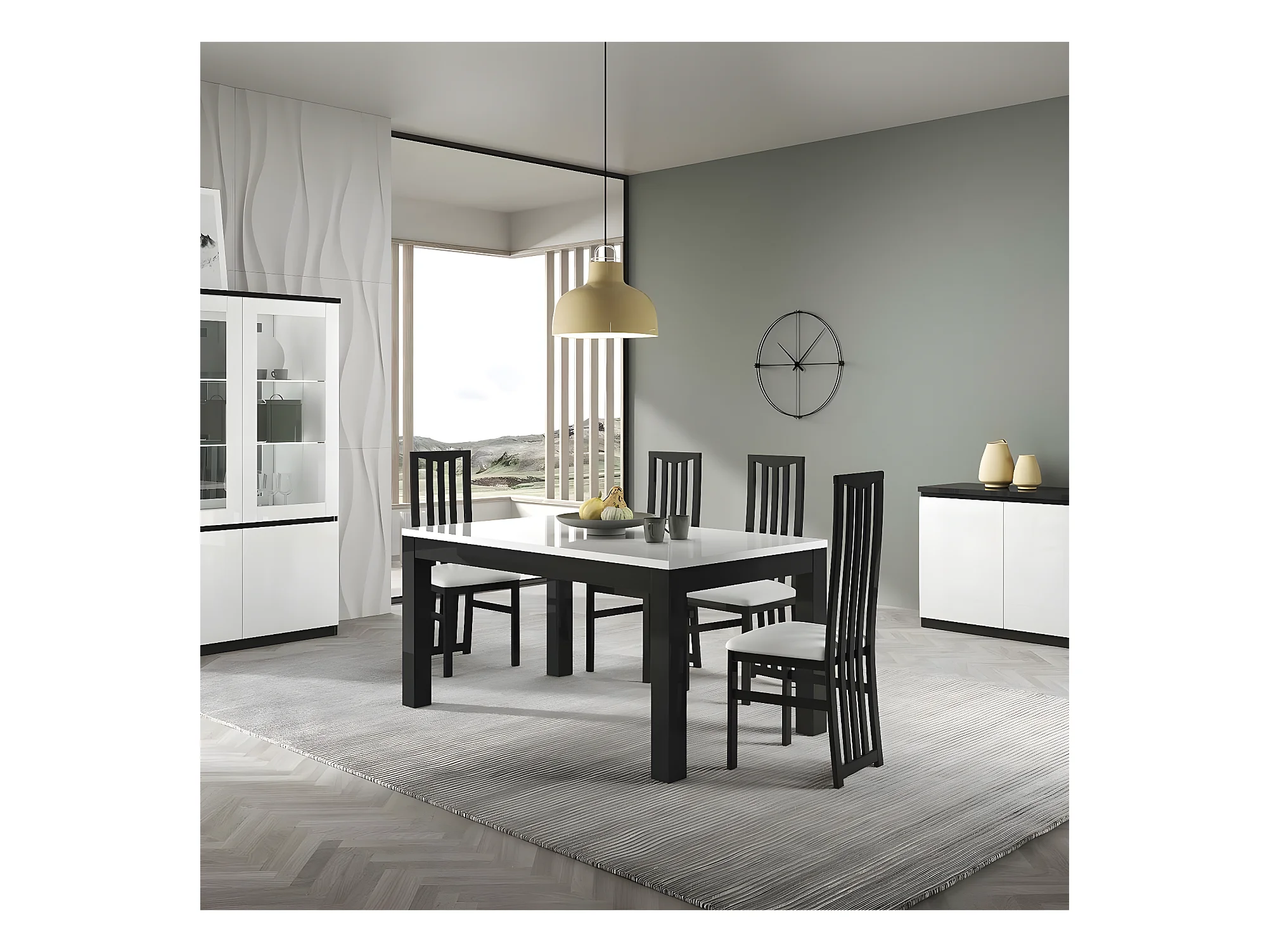 DEYTON - Ensemble Séjour Complet Laqué Noir et Blanc Table 160cm + Buffet + Vitrine avec Leds