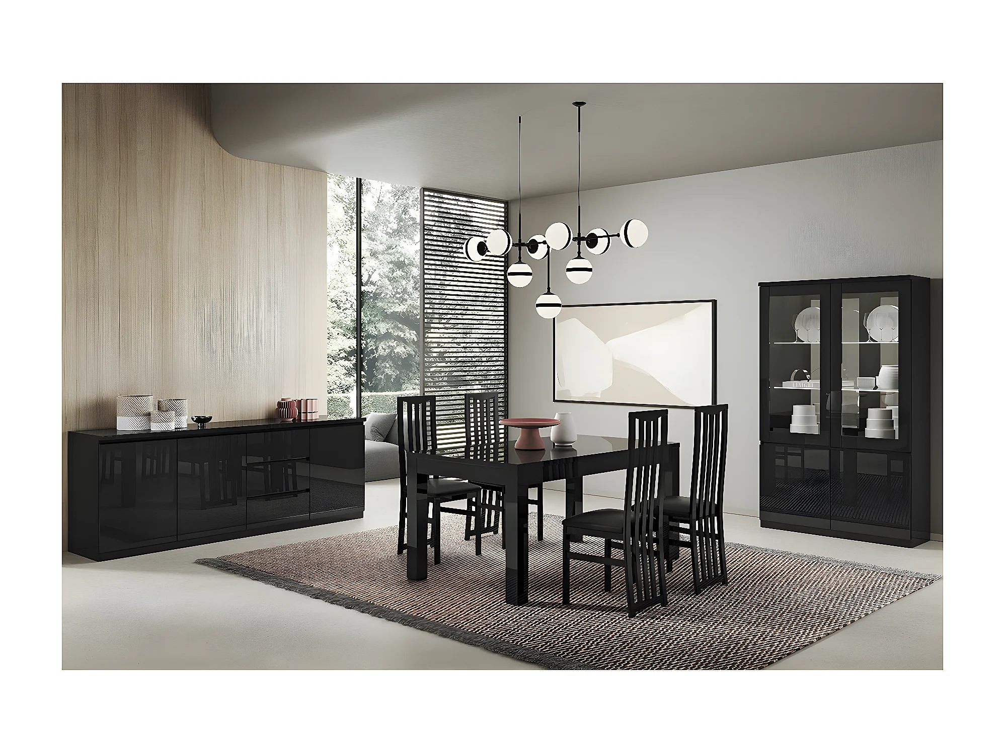 DEYTON - Ensemble Séjour Complet Laqué Noir Table 190cm + Buffet + Vitrine avec Leds