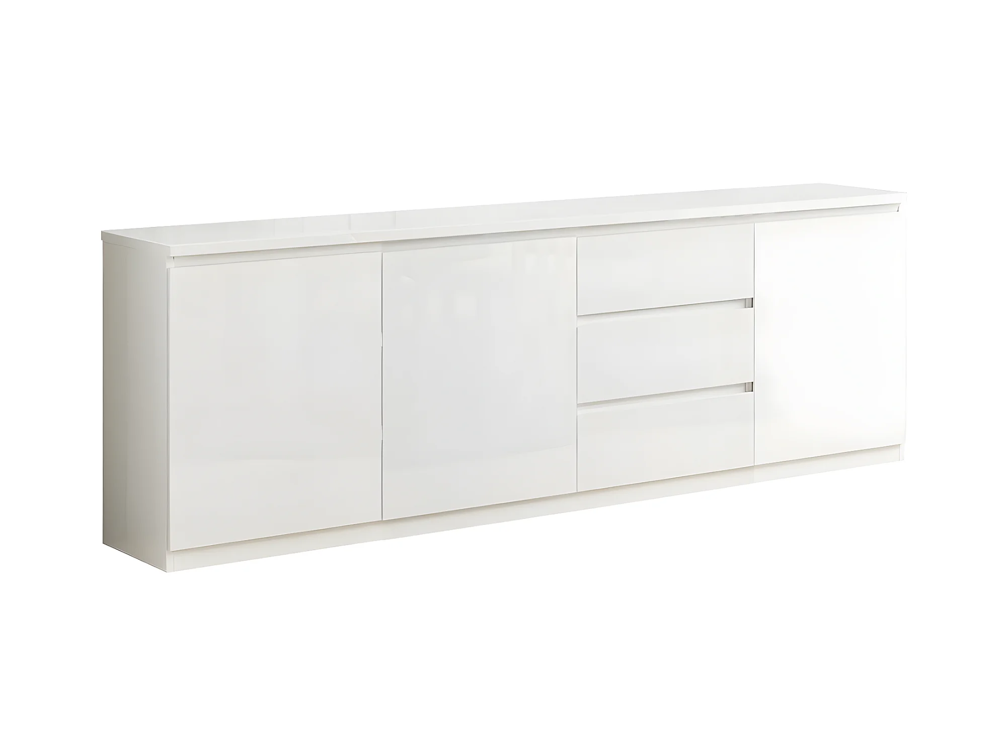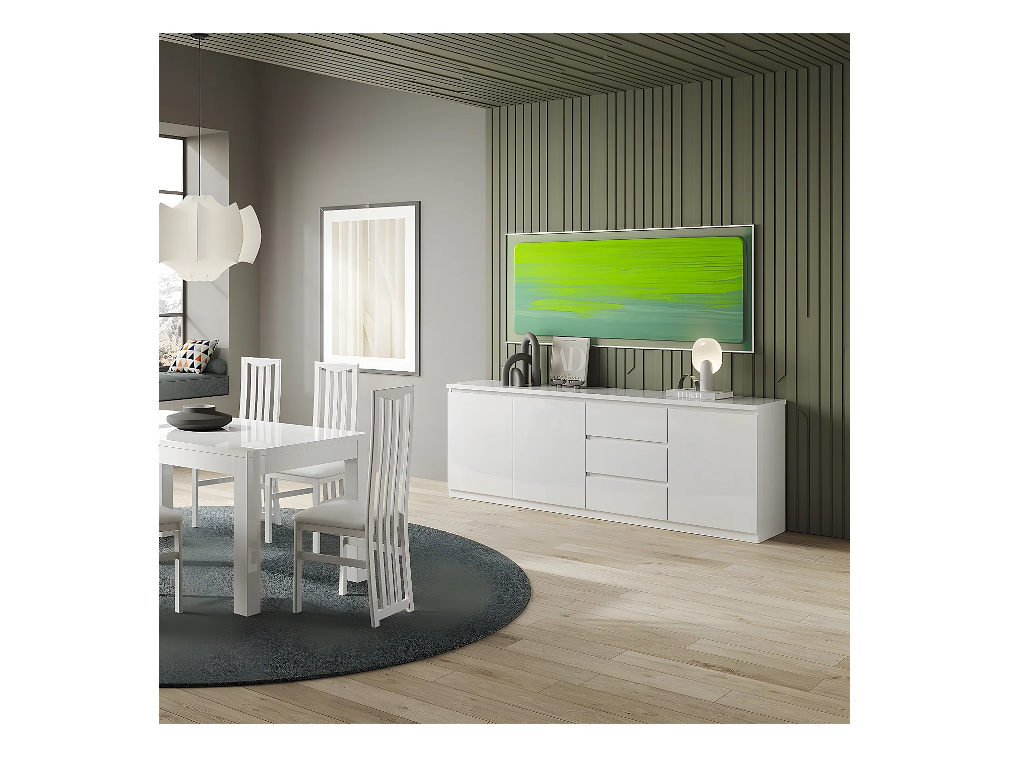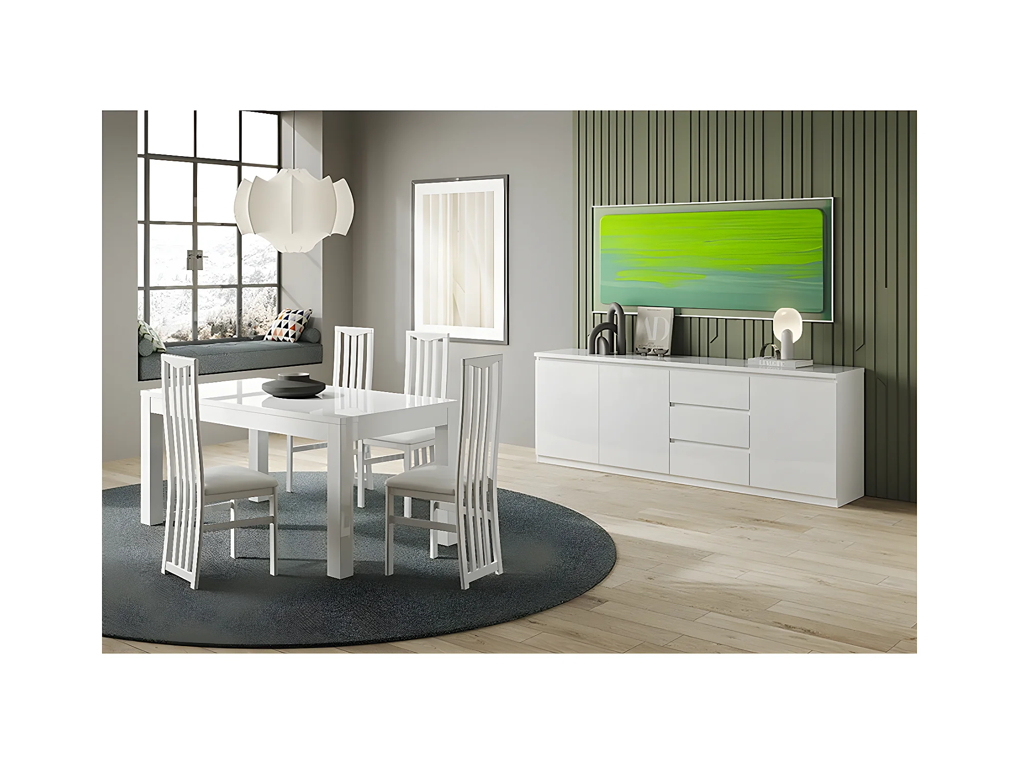 DEYTON - Ensemble Séjour Laqué Blanc Table 138cm + Buffet 3 Portes