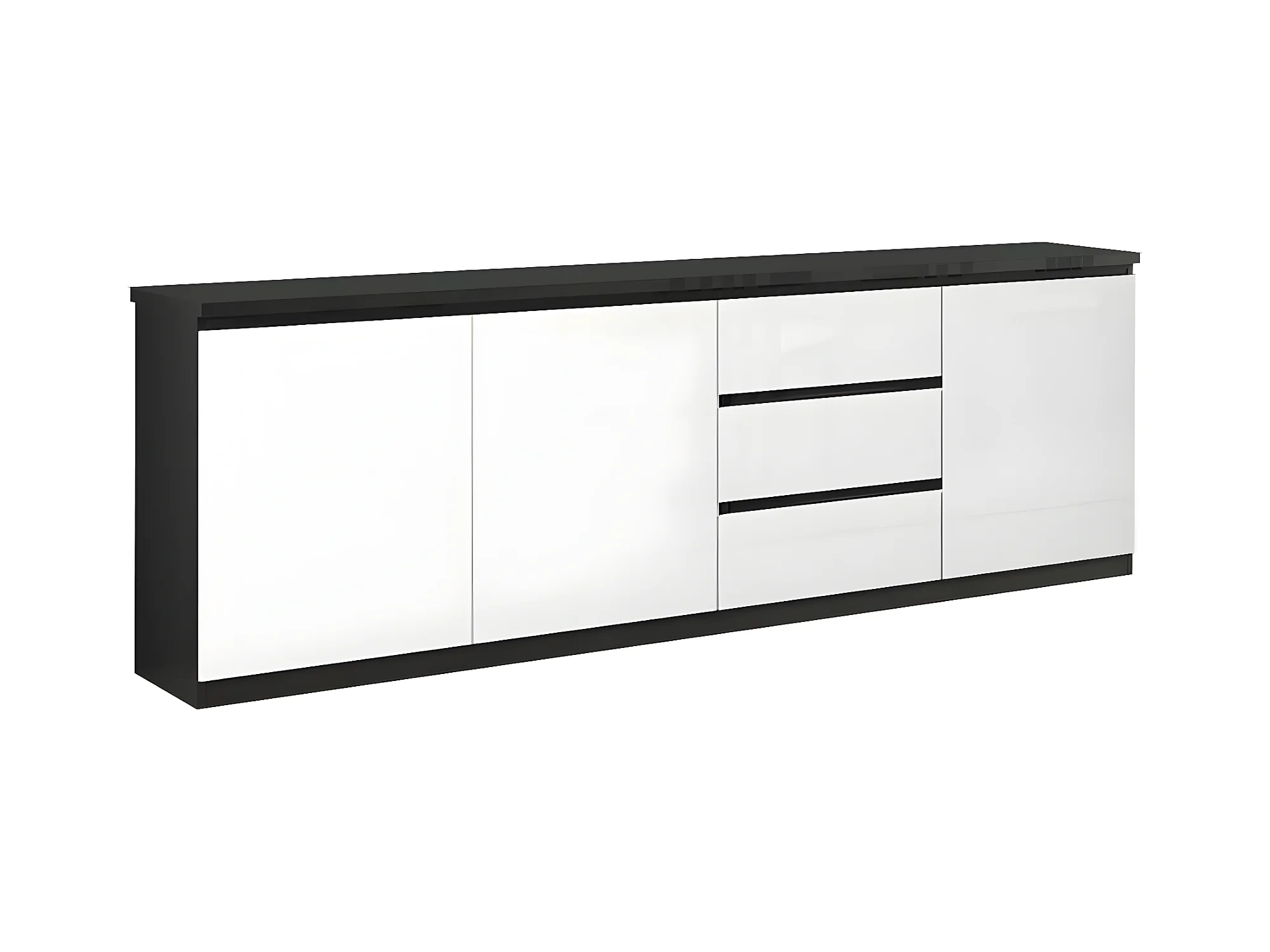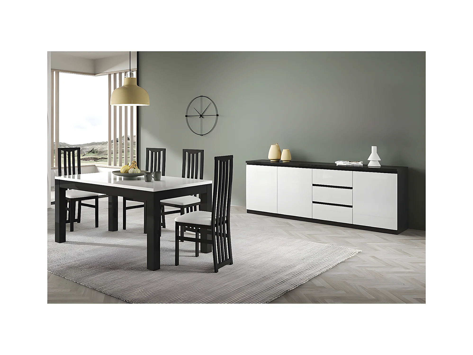 DEYTON - Ensemble Séjour Laqué Noir et Blanc Table 190cm + Buffet 3 Portes