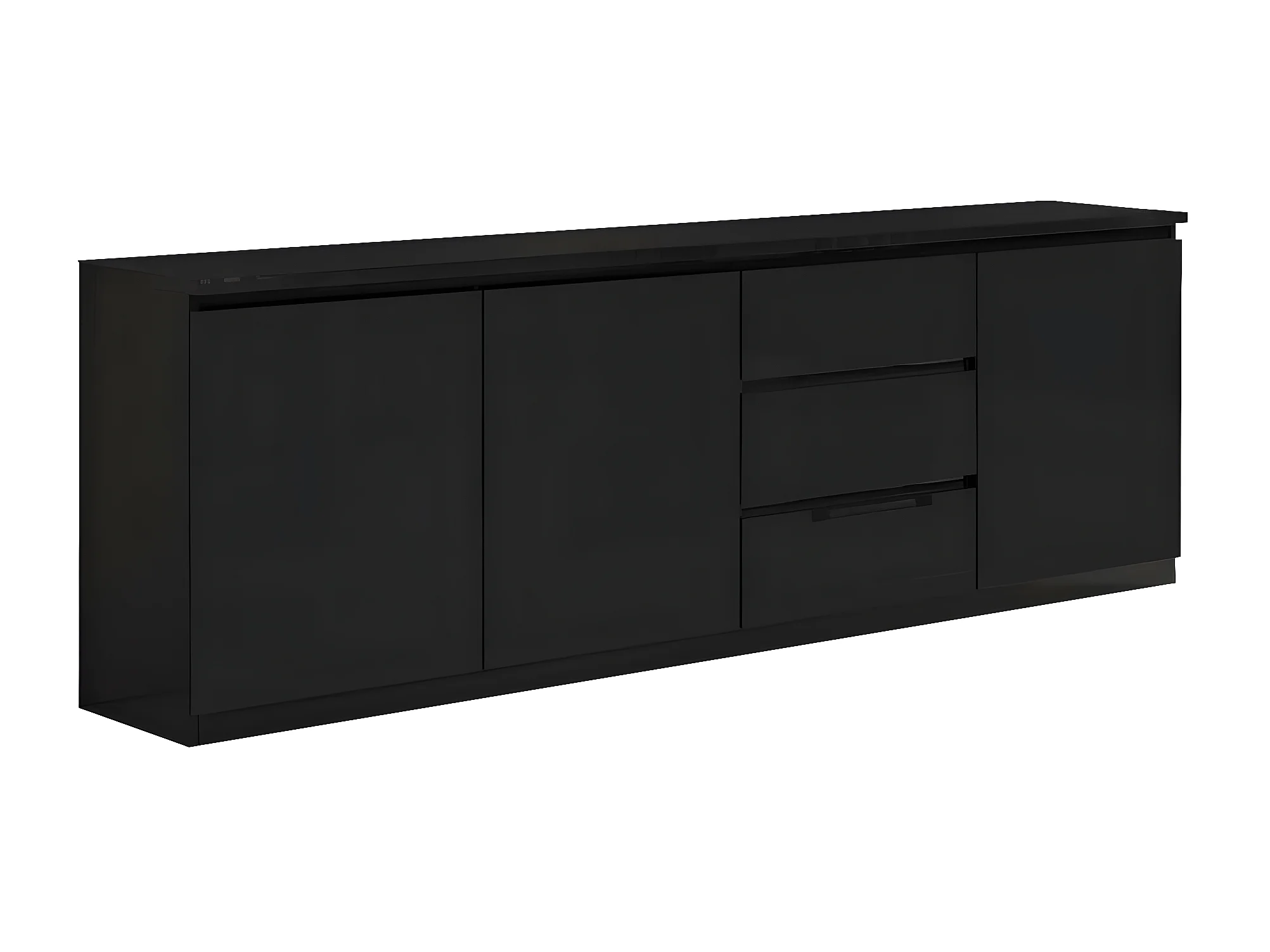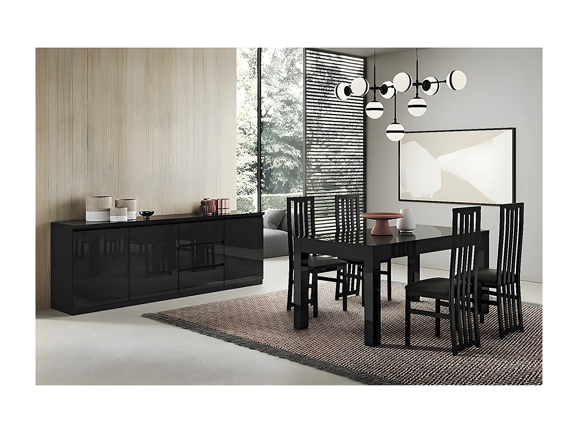 DEYTON - Ensemble Séjour Laqué Noir Table 160cm + Buffet 3 Portes