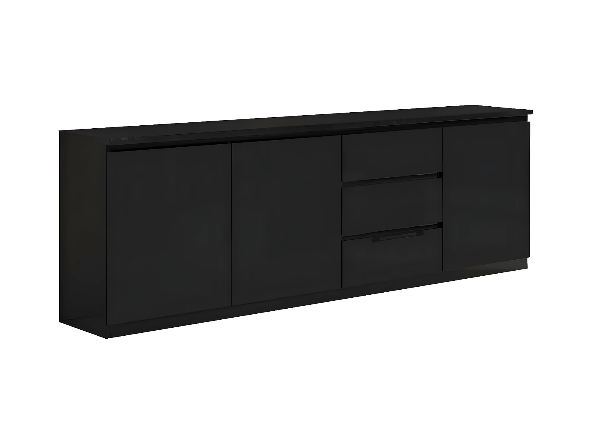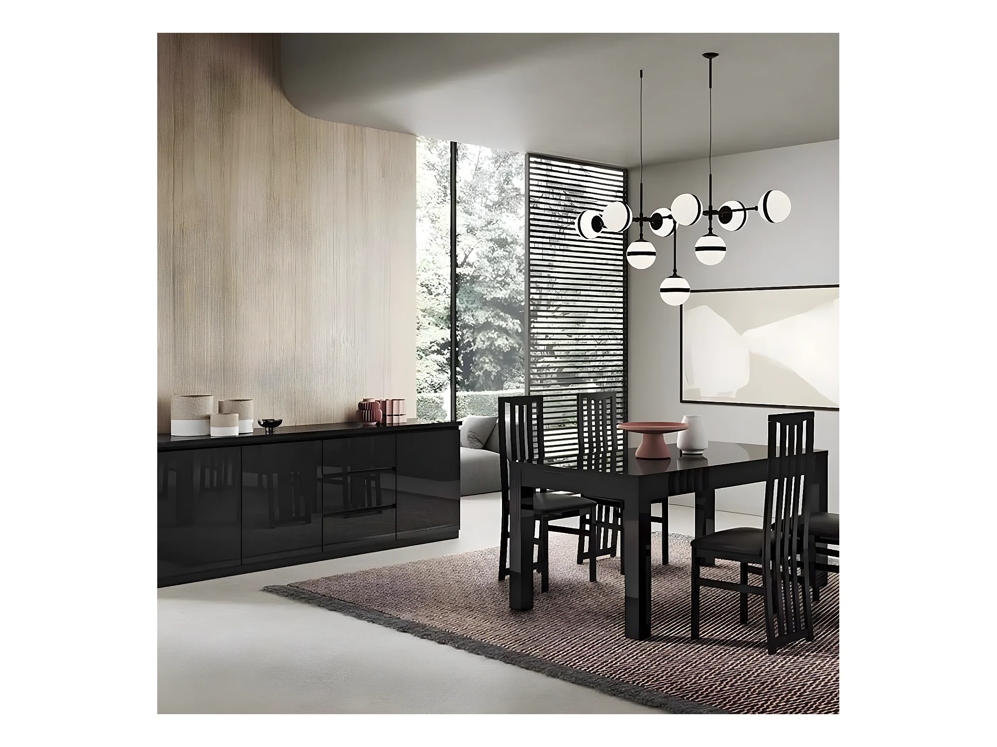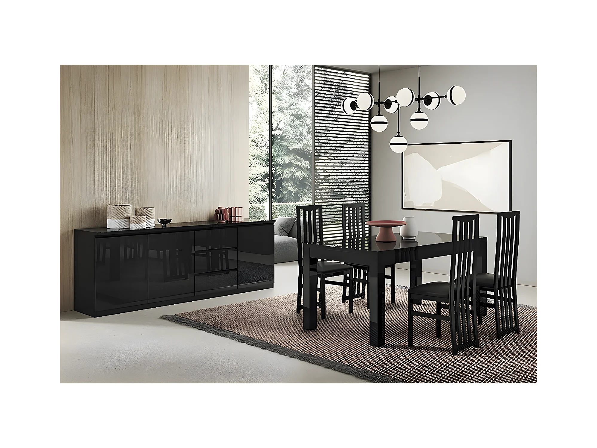 DEYTON - Ensemble Séjour Laqué Noir Table 190cm + Buffet 3 Portes