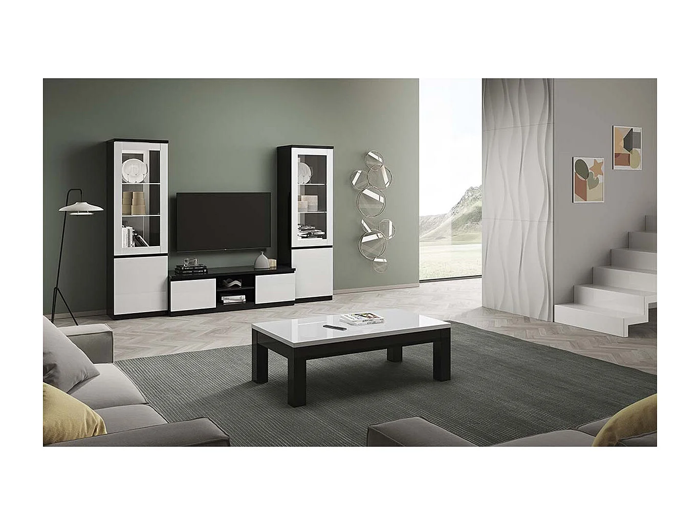 DEYTON - Meuble TV 2 Portes Laqué Noir et Blanc Brillant