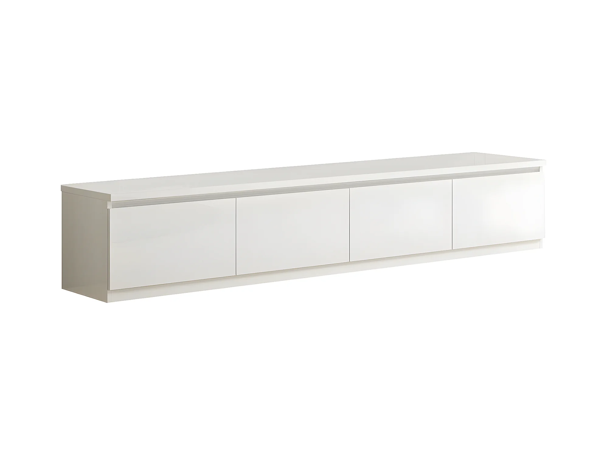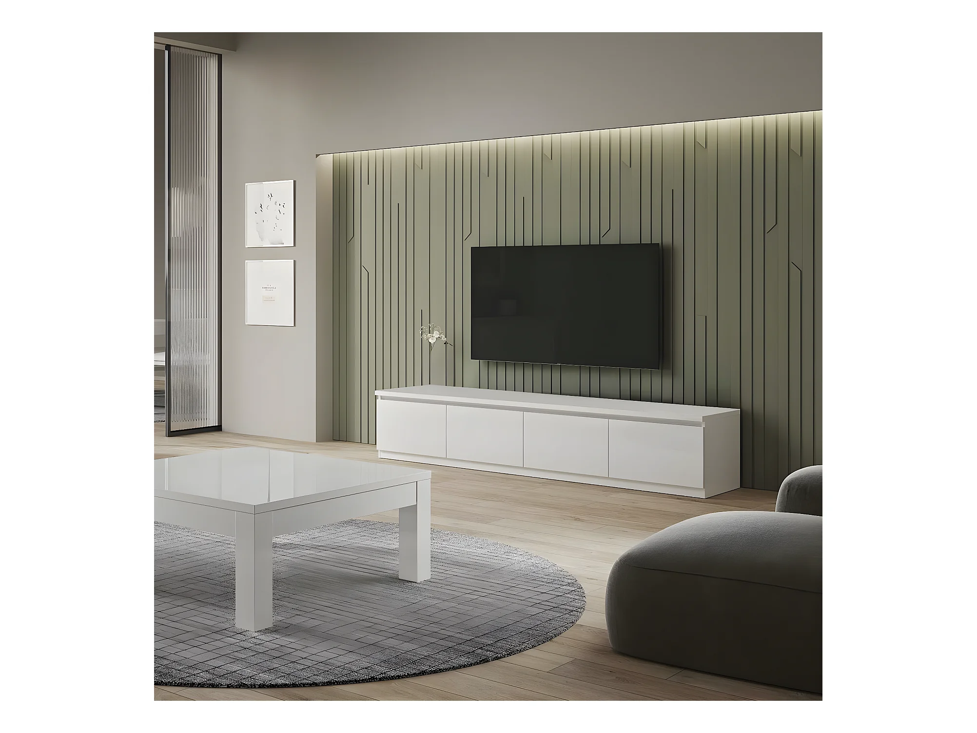 DEYTON - Meuble TV 4 Portes Laqué Blanc Brillant