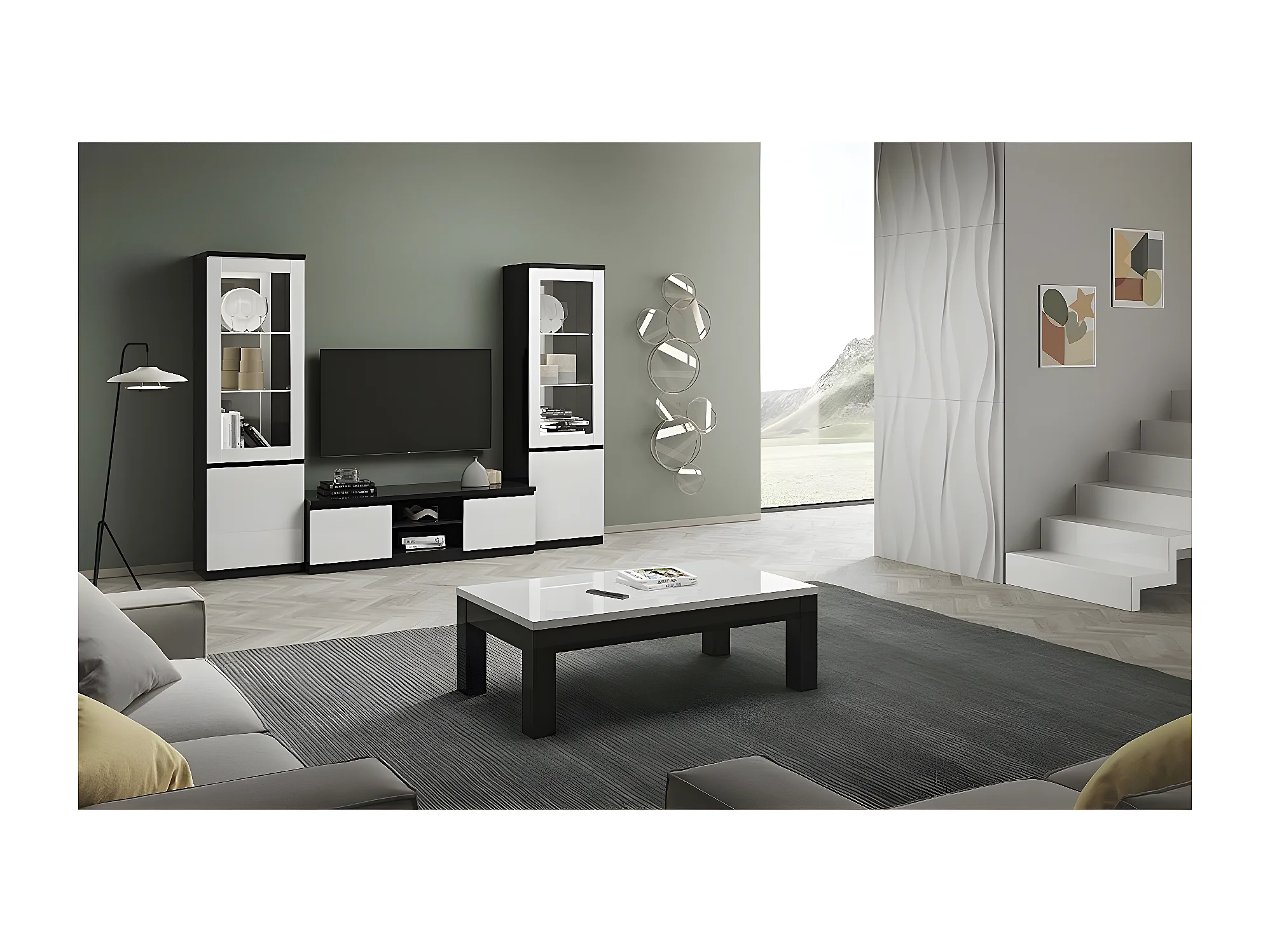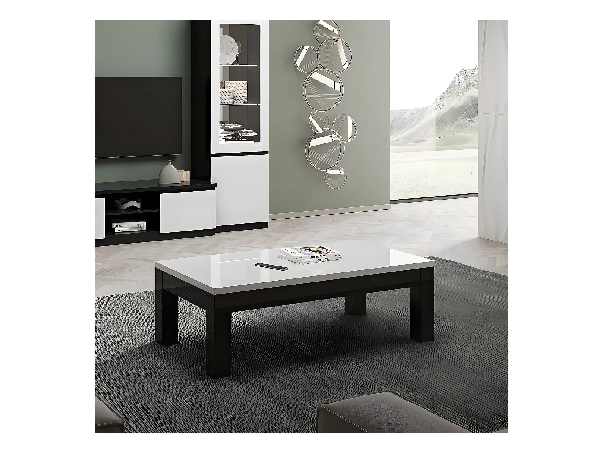 DEYTON - Table Basse L127cm Laquée Noir et Blanc Brillant