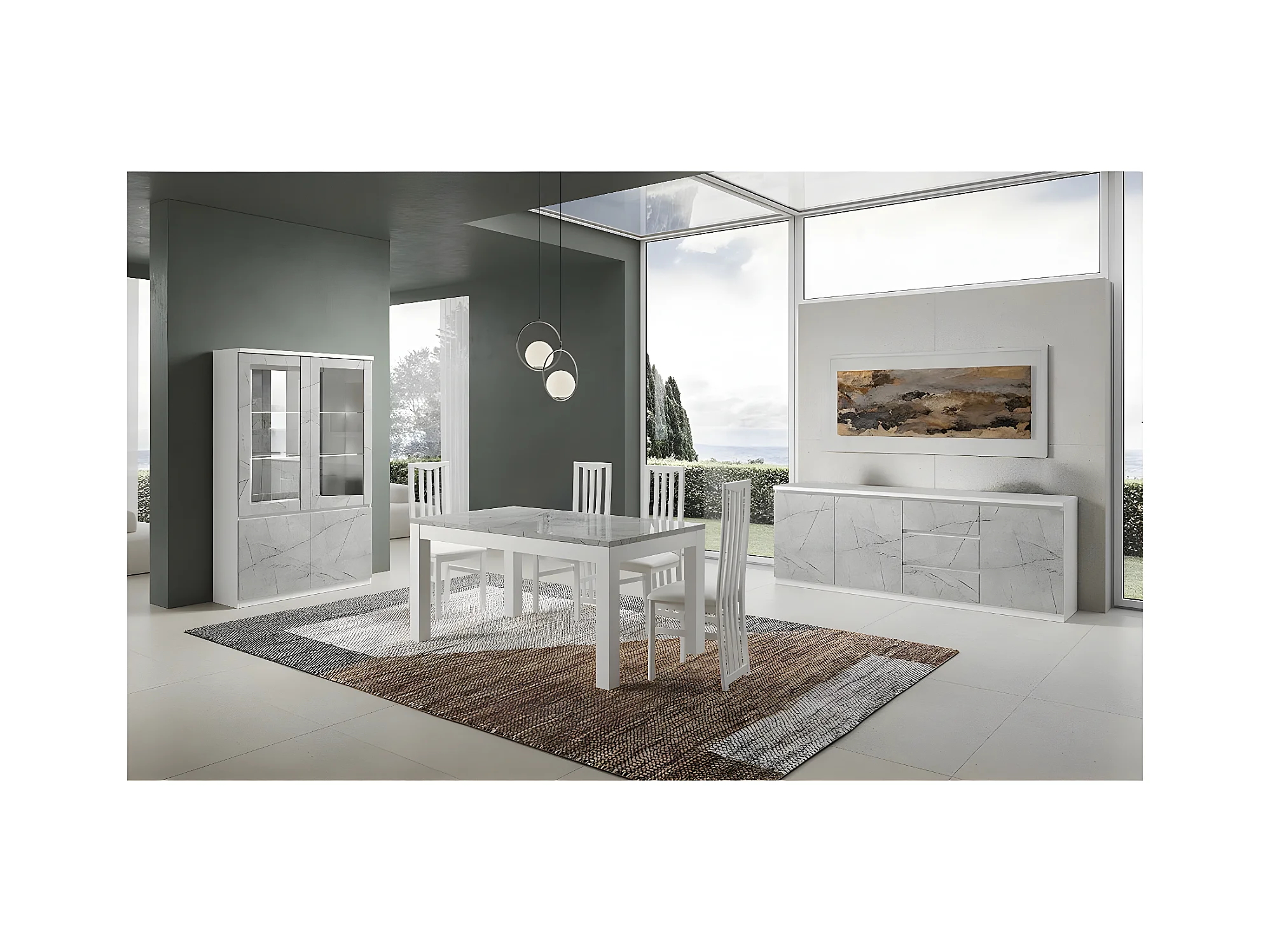 DEYTON - Table Rectangulaire 160x90cm Laquée Blanc et Gris Marbré