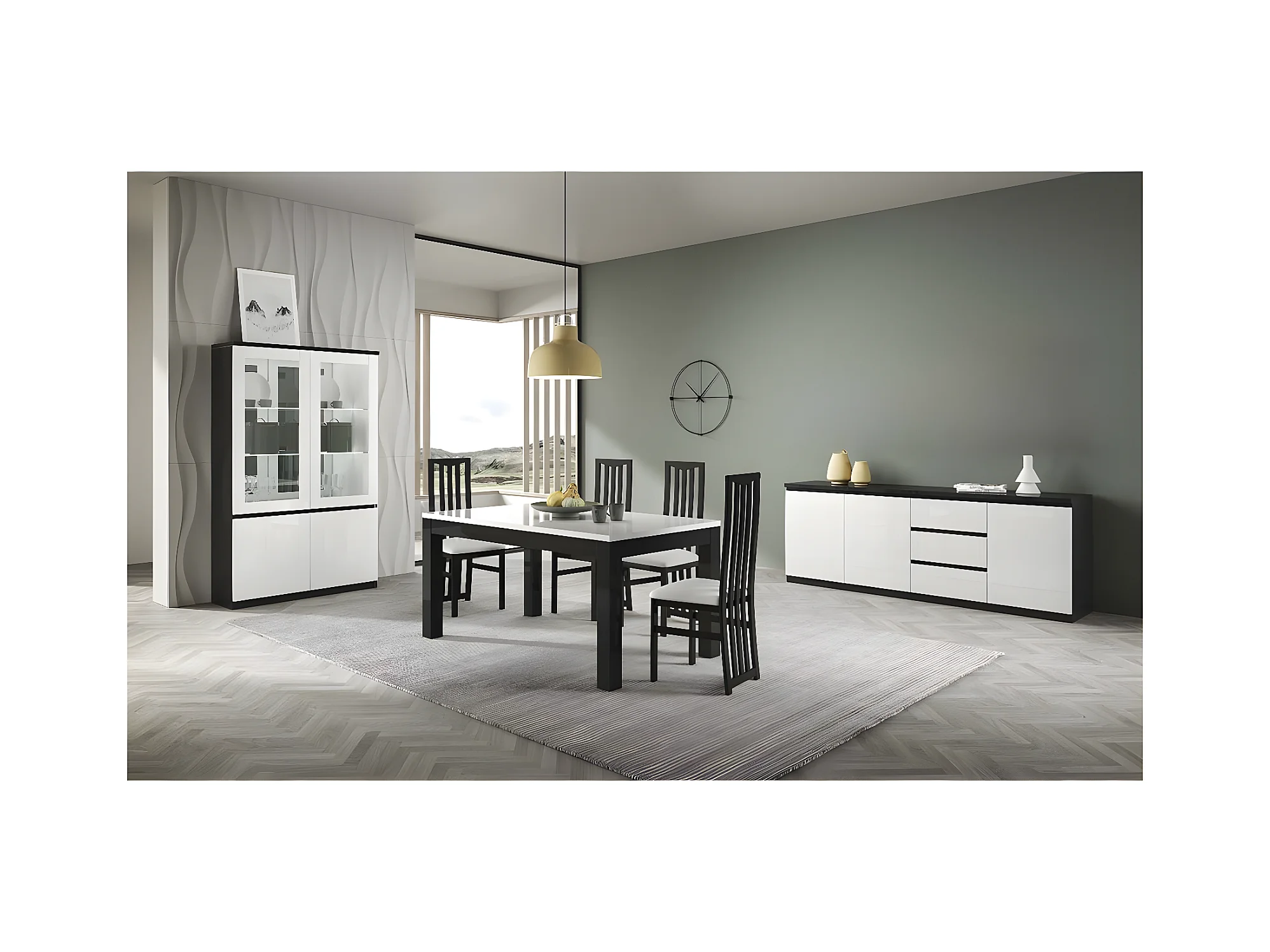 DEYTON - Table Rectangulaire 190x90cm Laquée Noir et Blanc Brillant