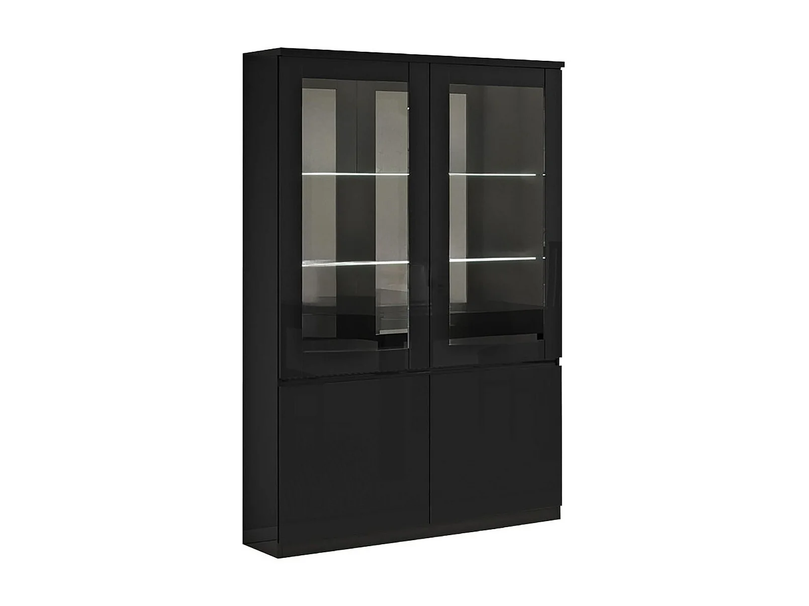 DEYTON - Vitrine 4 Portes Laquée Noir Brillant avec Led