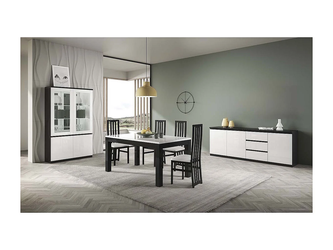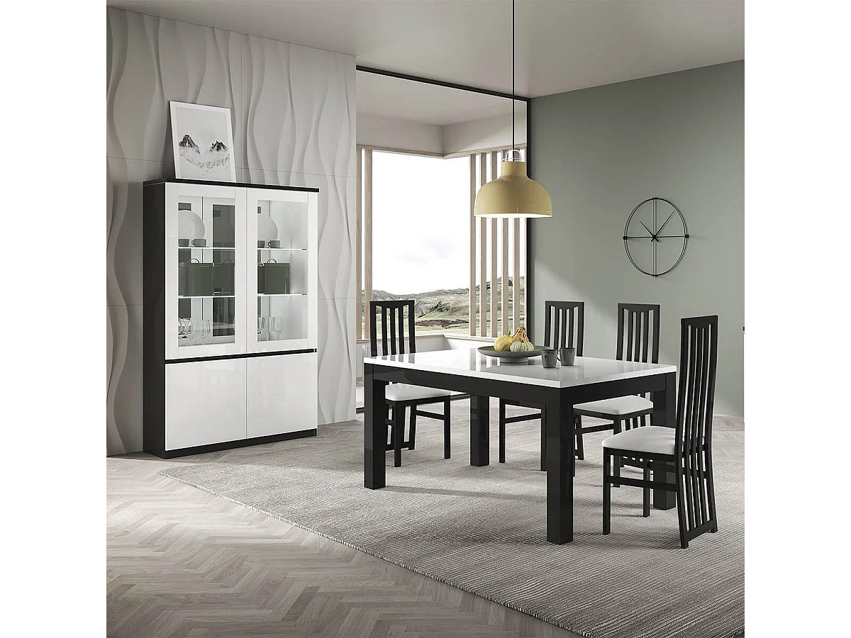 DEYTON - Vitrine 4 Portes Laquée Noir et Blanc Brillant avec Leds