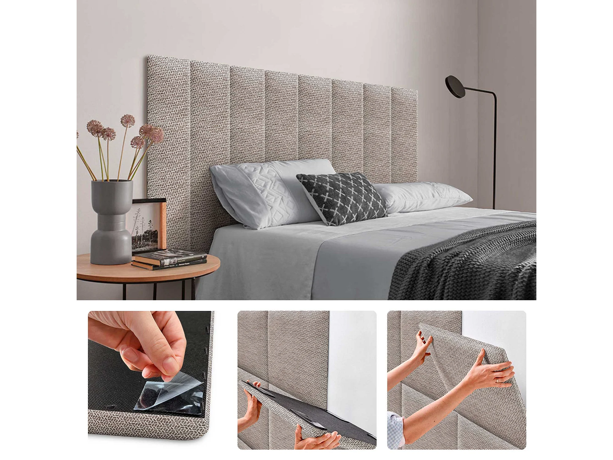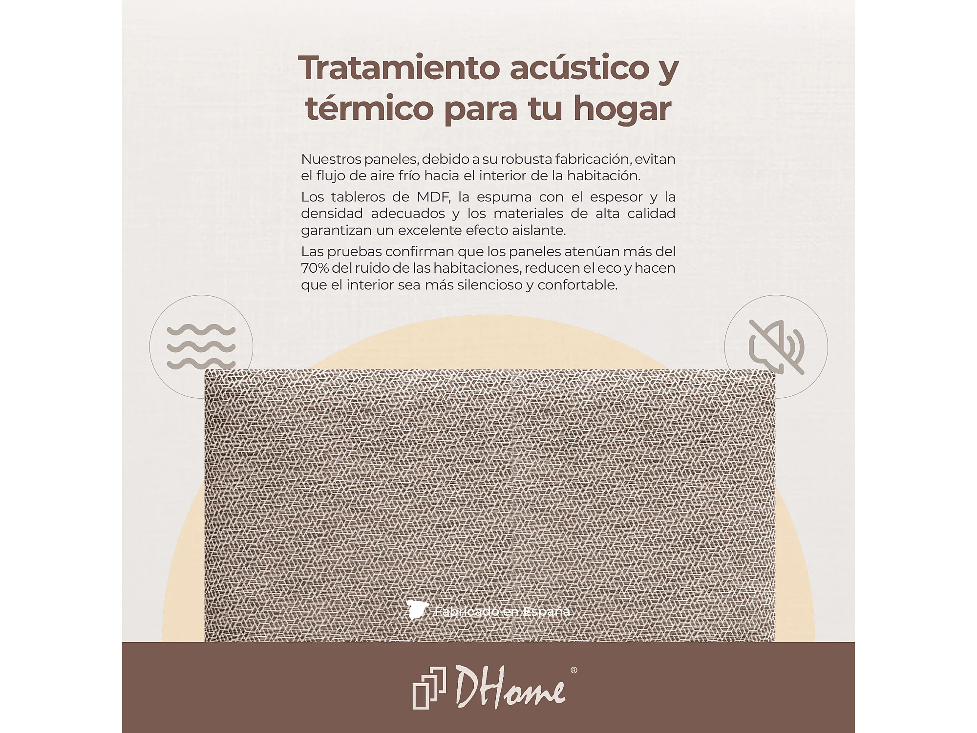 DHOME Ensemble de 8 Panneaux Tapissés en Tissu de Luxe Pack Autoadhésif pour Mur Acoustique Absorbant et Protecteur (Ethnic Brown, 60x20cm, x8)