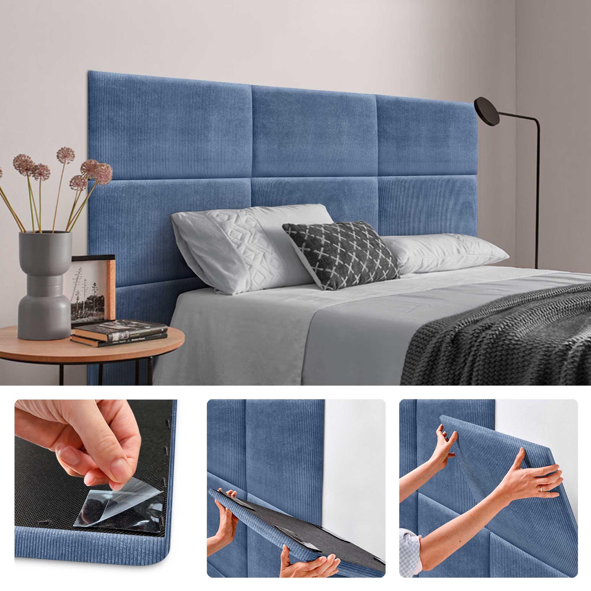 DHOME Panneaux Rembourrés en Velours Premium Autoadhésifs pour Mur Acoustique Absorbant Protection Contre les Chocs, Tete de lit (bleu, 60x40cm)
