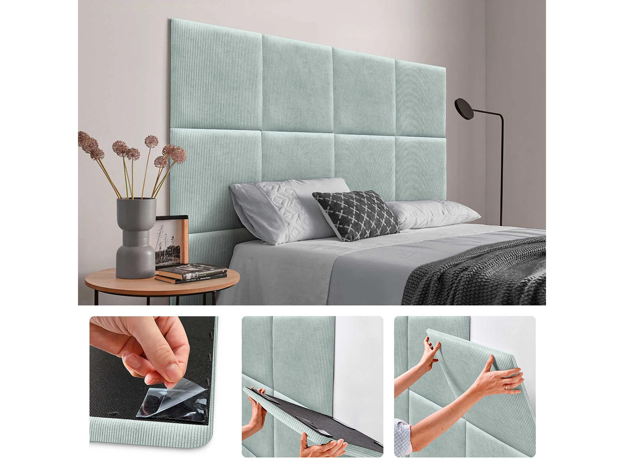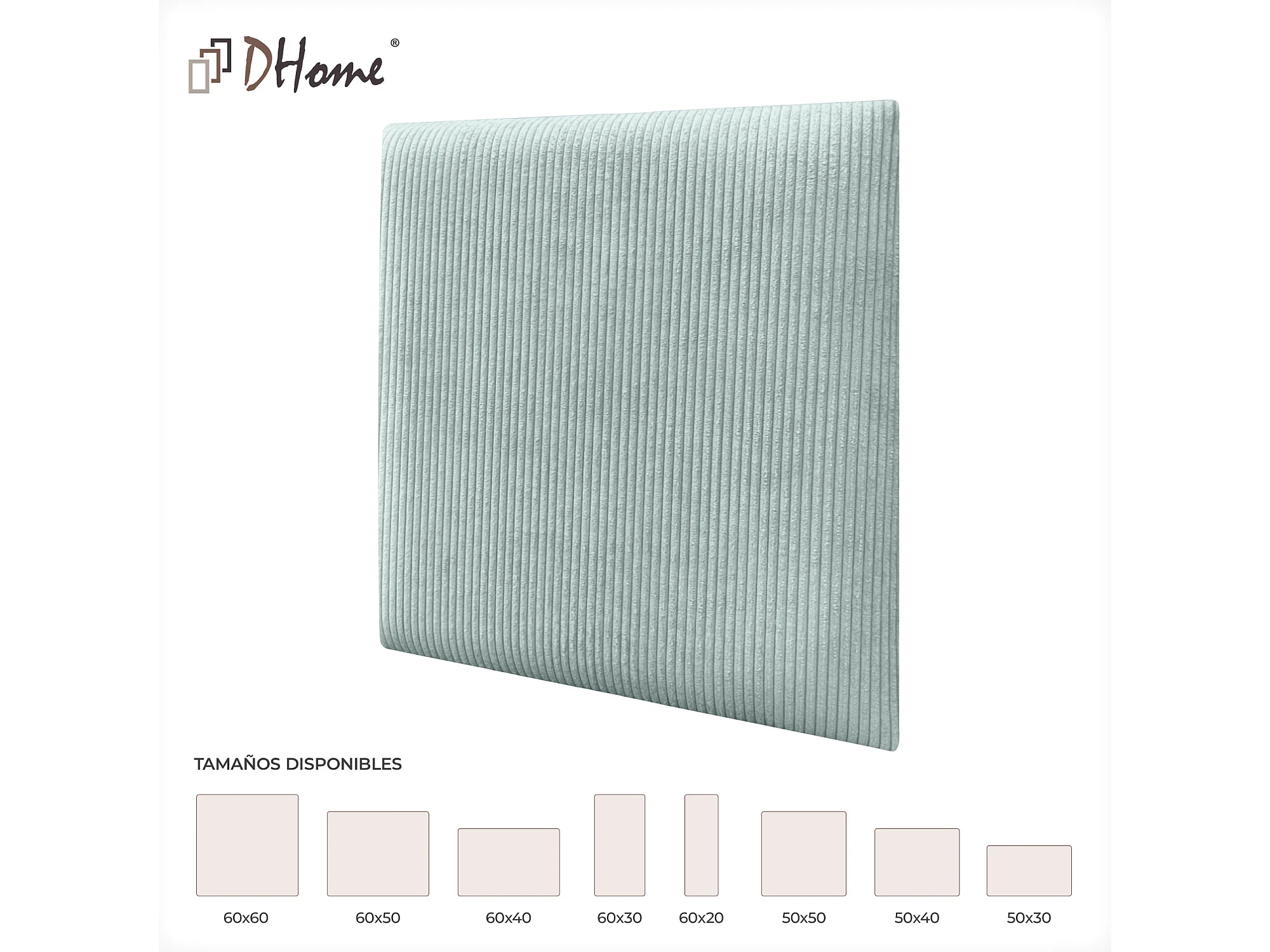 DHOME Lot de 1 Panneau Rembourré en Velours Côtelé Premium Autocollant pour Mur Acoustique Absorbant (Vert Eau, 60x60cm, x1)