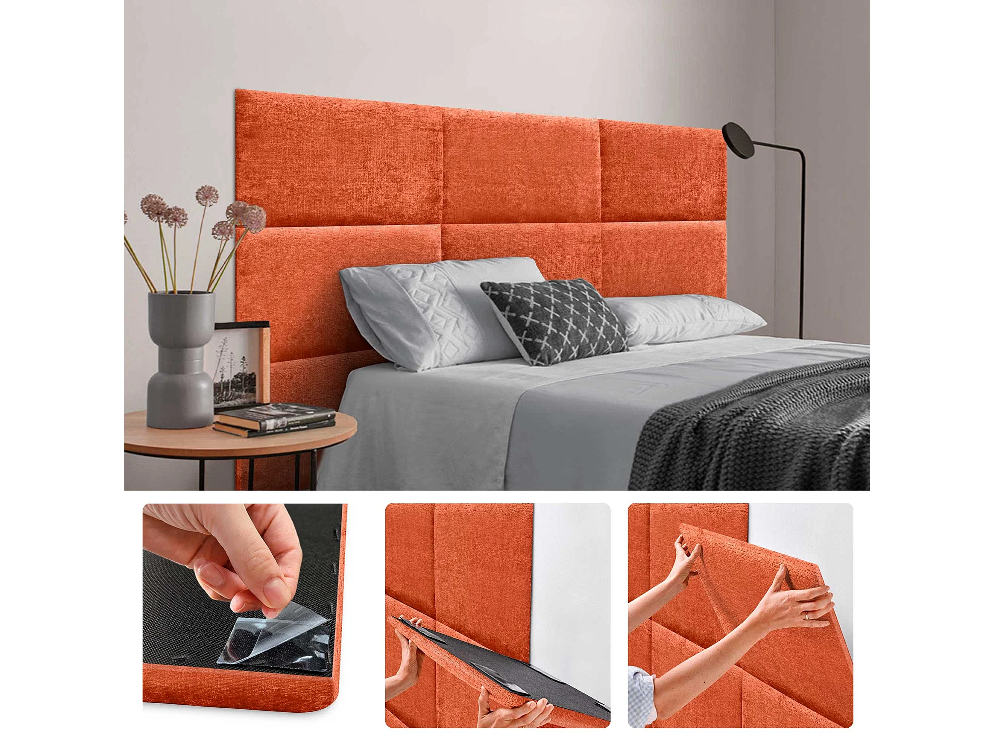 DHOME Tête de Lit Rembourrée en Laine Écologique Composée de Panneaux Autocollants Interchangeables Chambre de Luxe Rembourrée (Orange, 150 cm)