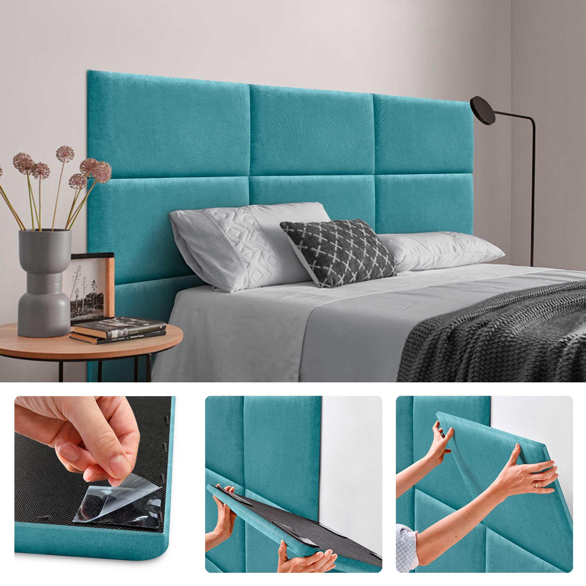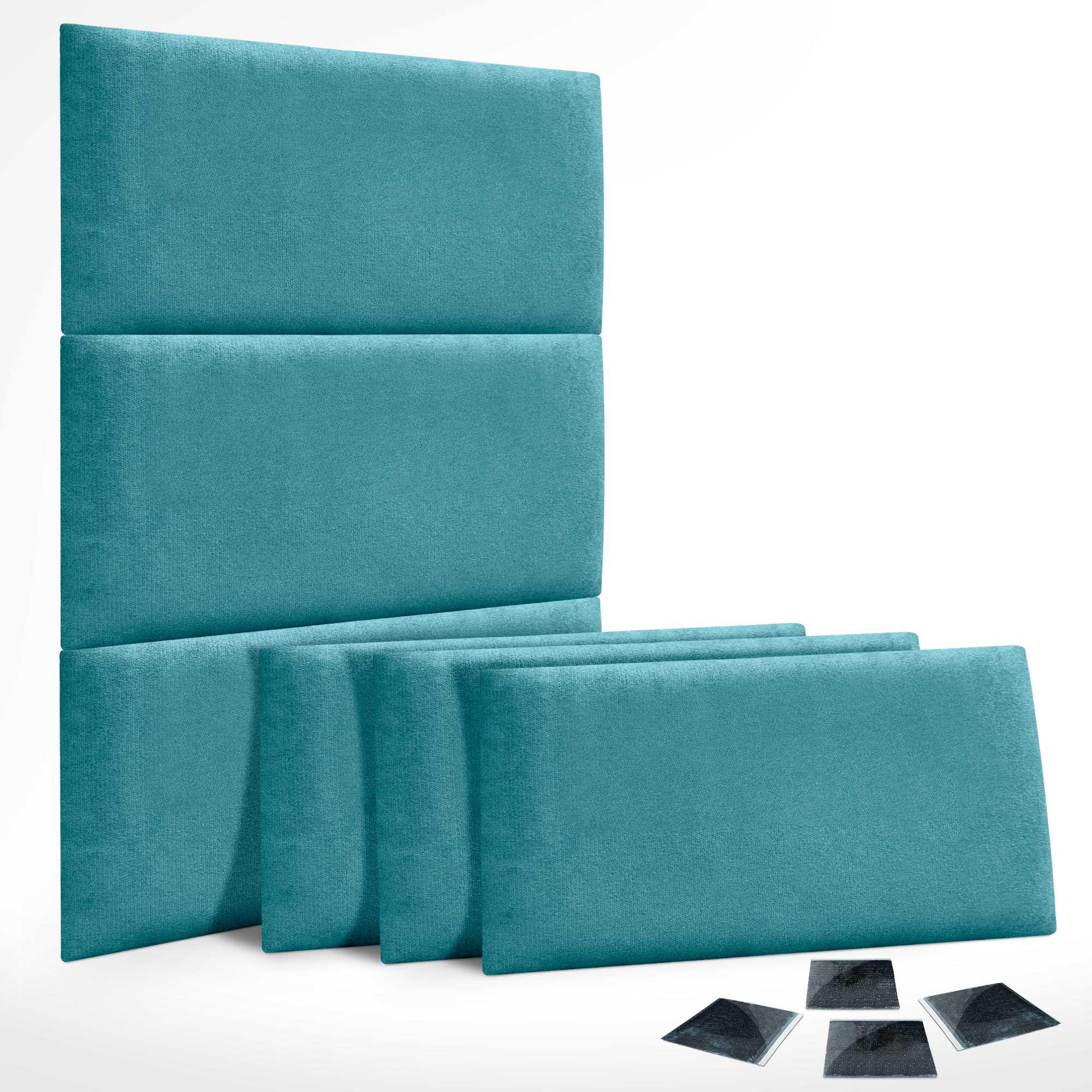 DHOME Lot de 6 Panneaux Rembourrés en Tissu Aqualine Autocollants pour Mur Acoustiques Absorbants Protection contre les Chocs (Turquoise, 50x30cm, x6)