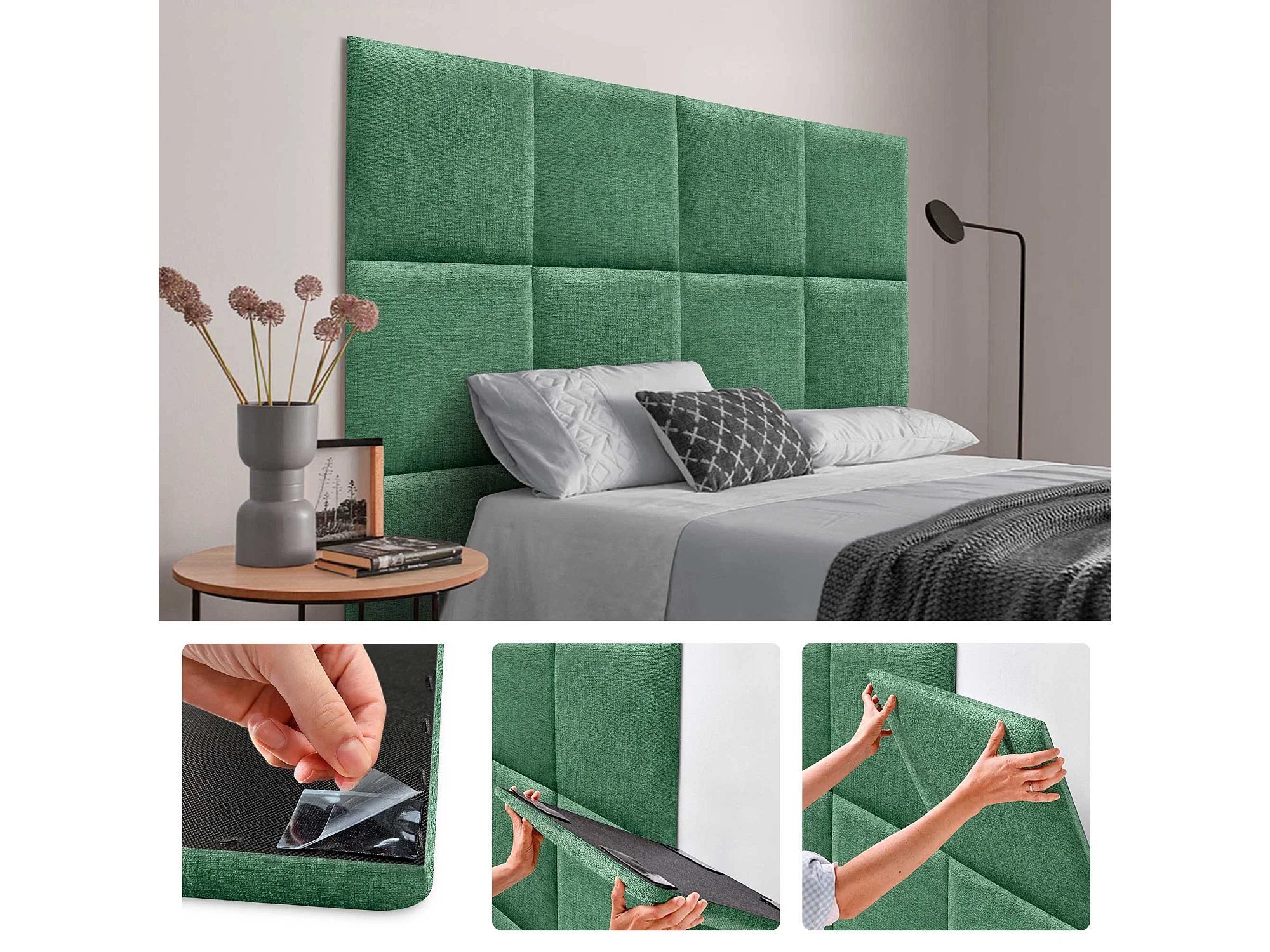 DHOME Lot de 6 panneaux muraux acoustiques auto-adhésifs en laine écologique protection absorbante contre les chocs (Vert, 60 x 60 cm, x6)